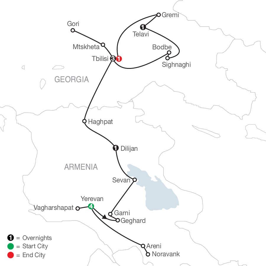 Discover fascinating history and spectacular sights of Yerevan, Armenia, with exciting excursions to the ancient citadels, cathedrals, and cities to learn about the vast history, culture, and traditions of this extraordinary country of kings, queens, and conquests through time. Revel in beautiful customs and cuisine throughout your travels—from local wines made with generations of tradition to lavish cathedrals still standing as sentinels of faith, to welcoming people who invite you into their homes for the pleasures of life in this beautiful part of the world. Your Small Group Discovery tour continues to Georgia to discover even more beauty and boundless historical treasures. Here, the history of dreamers and dictators; poets and artists; winemakers and warriors, and the ever-faithful religious legends come to life amid natural wonders and ancient cobblestoned lanes. An adventure in beauty and bold history awaits with up-close experiences on this Small Group Discovery tour!