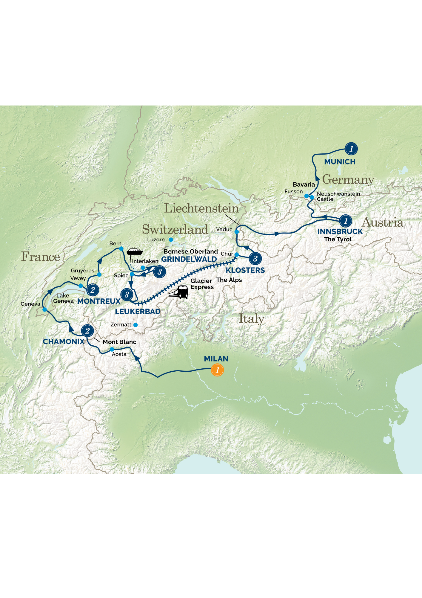After a brief morning stop in Vaduz, the capital of Liechtenstein, we drive through the Arlberg Tunnel and into the Tyrol region of Austria. Following the spectacular Inn Valley past St Anton, we reach the Winter Olympic resort of Innsbruck. Dinner tonight is included and will be at a local restaurant.