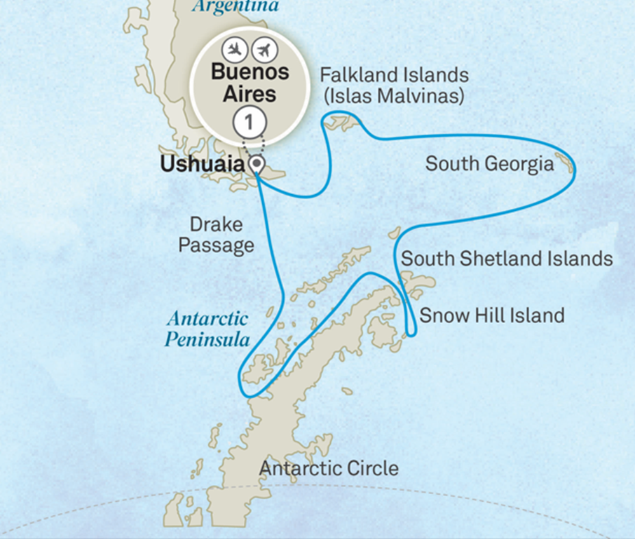 The itinerary is a guide only and may be amended for operational reasons. As such Scenic cannot guarantee the voyage will operate unaltered from the itinerary stated above. Locations listed within South Georgia, Falkland Islands and Antarctica are subject to weather and operational conditions. Sightings cannot be guaranteed. Please refer to our terms and conditions for further information.