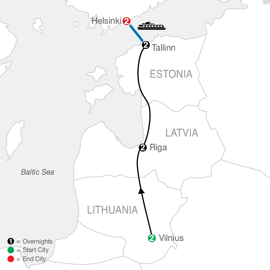 Have a very Baltic Christmas on this merry tour featuring festive holiday markets that glow with good tidings and timeless traditions. Bells are ringing and choirs are singing through Lithuania, Latvia, Estonia, and Finland with merry wishes and magical wonders of the season. Discover brightly dressed trees in Christmas lights, unforgettable UNESCO Heritage Sites, and the natural beauty of the Baltic coastline. Ferry to Helsinki’s Nordic peninsula on the Gulf of Finland, where hearty dishes and heartwarming traditions make the season glow. Celebrate the season with mulled wine, mesmerizing markets, and handmade mementos handed down through generations of craftsmanship and cherished Christmas traditions on this tour of the Baltic states and Finland.