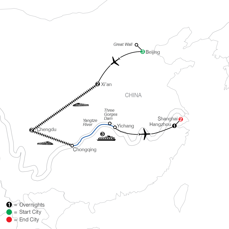Ancient wonders. Modern cities. Timeless traditions. Like a classic Chinese dumpling, this tour of China is filled with flavor, zest, and delectable elements of surprise. From the hutongs of Beijing to the longtangs of Shanghai, you’ll savor every Far East experience you’ve ever craved, including a rickshaw ride through Beijing’s narrow alleyways, a walk along the Great Wall, and a 3-night cruise through the magnificent Three Gorges of the winding, wondrous Yangtze, Asia’s longest river. This truly hands-on vacation will teach you the ancient art of tea making, the calming practice of tai chi, and the delicate art of making traditional dim sum, the dumpling whose name means “to touch the heart.” Expect additional flutters when you enter the Forbidden City, stand before Xi’an’s Terracotta Army, and observe the daily habits of the native pandas of Chengdu.
