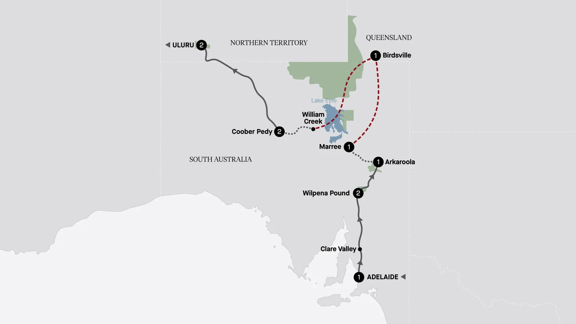 This morning is yours to explore at leisure. Perhaps take a scenic flight over Wilpena Pound to gain a true appreciation of this natural wonder (own expense). After lunch, embark on a guided walk to explore the incredible natural surrounds of Wilpena Pound. This evening, enjoy dinner back at your resort.
