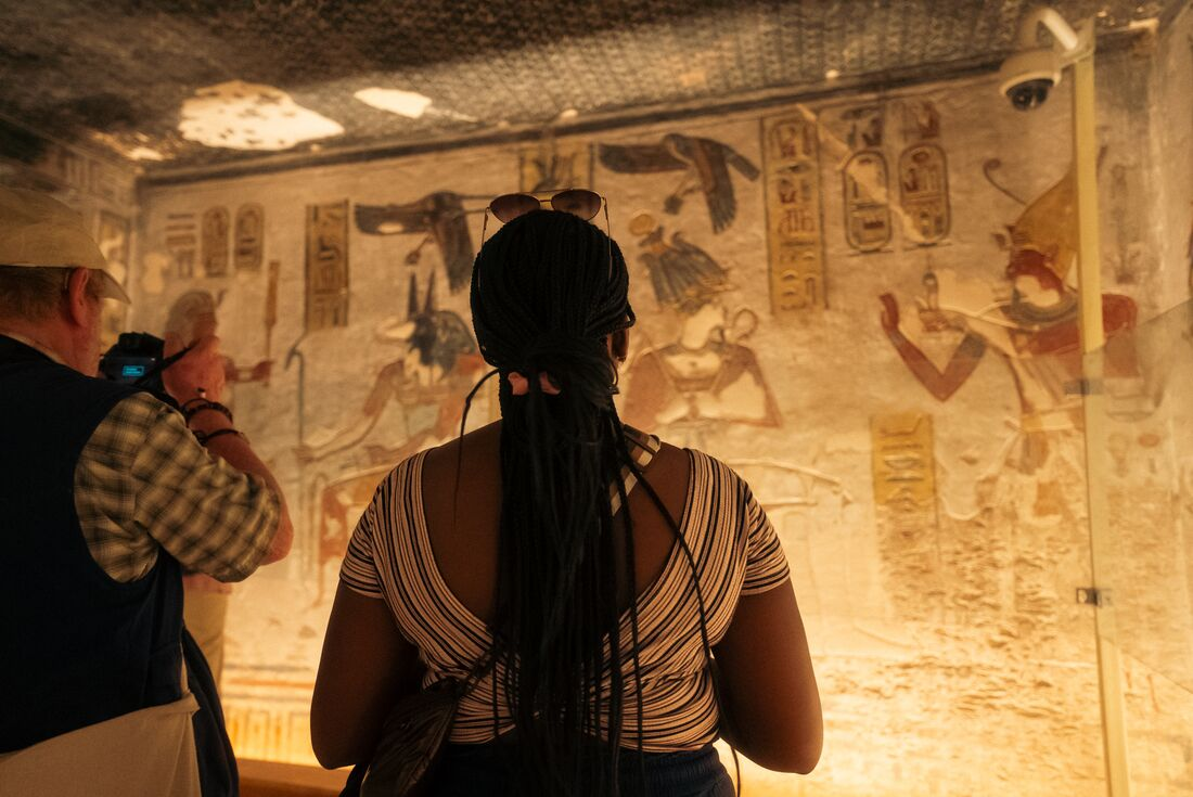 Today you’ll hop in a private minivan and discover ancient Thebes. Your first stop is the Colossi of Memnon – two 17-metre-high statues on Luxor's west bank. Continue on to the Valley of the Kings. Buried under the arid hills are over 60 pharaoh tombs, many richly decorated with reliefs and paintings. With your leader, explore the place where the pharaohs of the New Kingdom (16th to 11th century BC) were secretly interred for all eternity, and where discoveries are still being made. Your group leader will explain the history and legends of these remarkable people, and the significance of the many paintings and hieroglyphics, still well preserved in the deepest tombs. Visit three of the royal tombs, including Tutankhamun’s tomb where he is buried, then continue to the Temple of Queen Hatshepsut – a columned building set against high cliffs that create a spectacular natural amphitheatre. The afternoon is yours to explore. Maybe you'd like to shop in the market or visit the world's first Mummification Museum, where you can discover the secrets of pharaonic preservation. This evening, set sail to Edfu.
