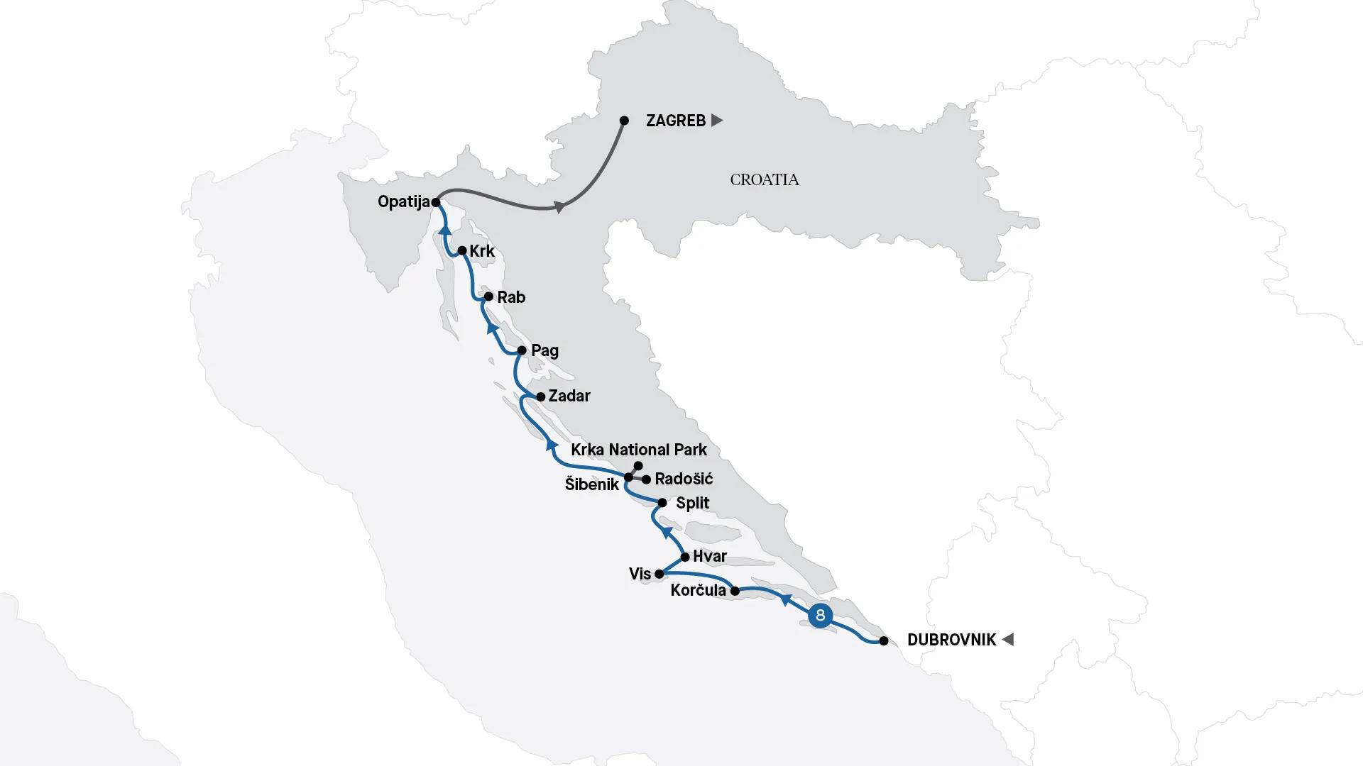 After a final breakfast, say a fond goodbye to the MV Lady Eleganza and its crew before a transfer from Opatija to Zagreb Airport for your onward flight.