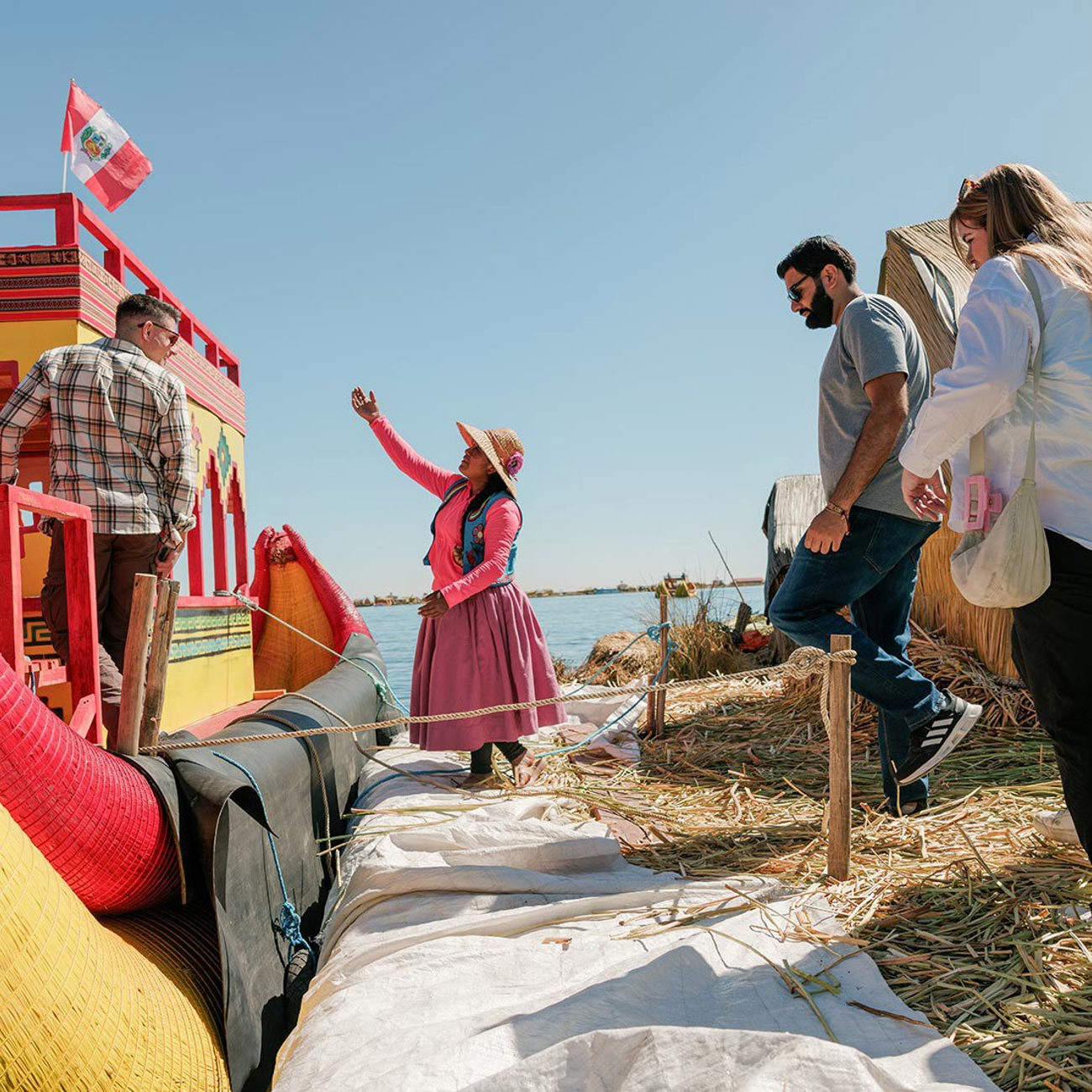 Lake time! Today, we'll make our way to Lake Titicaca, cruising out across the lake towards Taquile Island. On the way, you’ll visit a floating island built from totora reeds, stepping onto the man-made platforms and checking out the reed houses up close. We'll explore a quieter part of Taquile on a short hike to an open-air market where the community shares dances, textiles, and local traditions. Then follow a pre-Incan path down to a sandy beach for some chill time. Hungry? Once we arrive on the Capachica Peninsula, we'll head into a local family homestay, and sit down for lunch made from local produce, with an optional late-afternoon hike up to a nearby hill for sunset. Later, after dinner, we’ll round things off with a small celebration of traditional music and dancing, then settle in for the night in basic but comfy rooms.