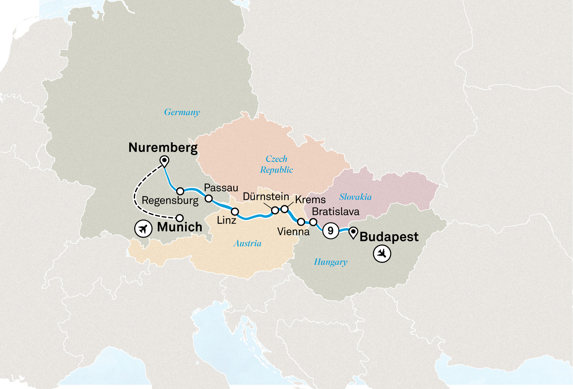 Welcome to Germany. Transfer to the ancient city of Nuremberg, the second largest centre in Bavaria, where your Danube journey begins.