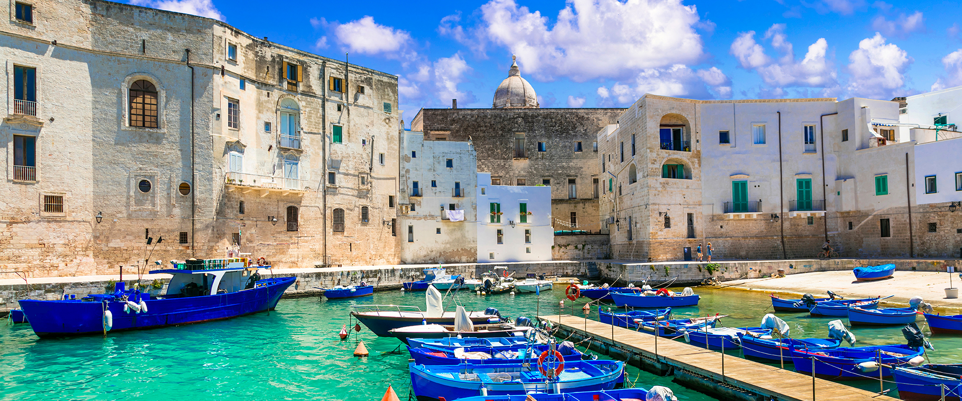 Tracing its origins back to 545 AD when it was founded by the Greeks, Monopoli is a melting pot of Byzantine, Venetian, and Turkish influence. Located in Puglia, on Italy’s south-eastern coast, Monopoli’s charming harbour, which is busy with fishermen, is surrounded by medieval stone walls and a 16th century fortress. Take a walk on lungomare, the seafront promenade that wraps around the town, take a dip at Cala Porta Vecchia, the town’s main beach or visit The Church of the Purgatory, a Baroque chapel which houses mummified remains of past citizens.