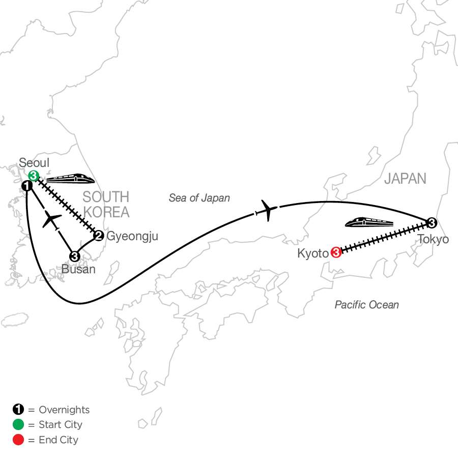 • Intra-vacation flights from Busan to Seoul and Seoul to Tokyo