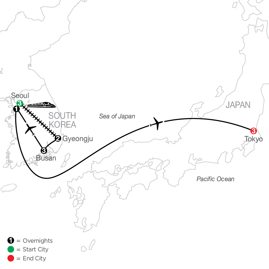• Intra-vacation flights from Busan to Seoul and Seoul to Tokyo