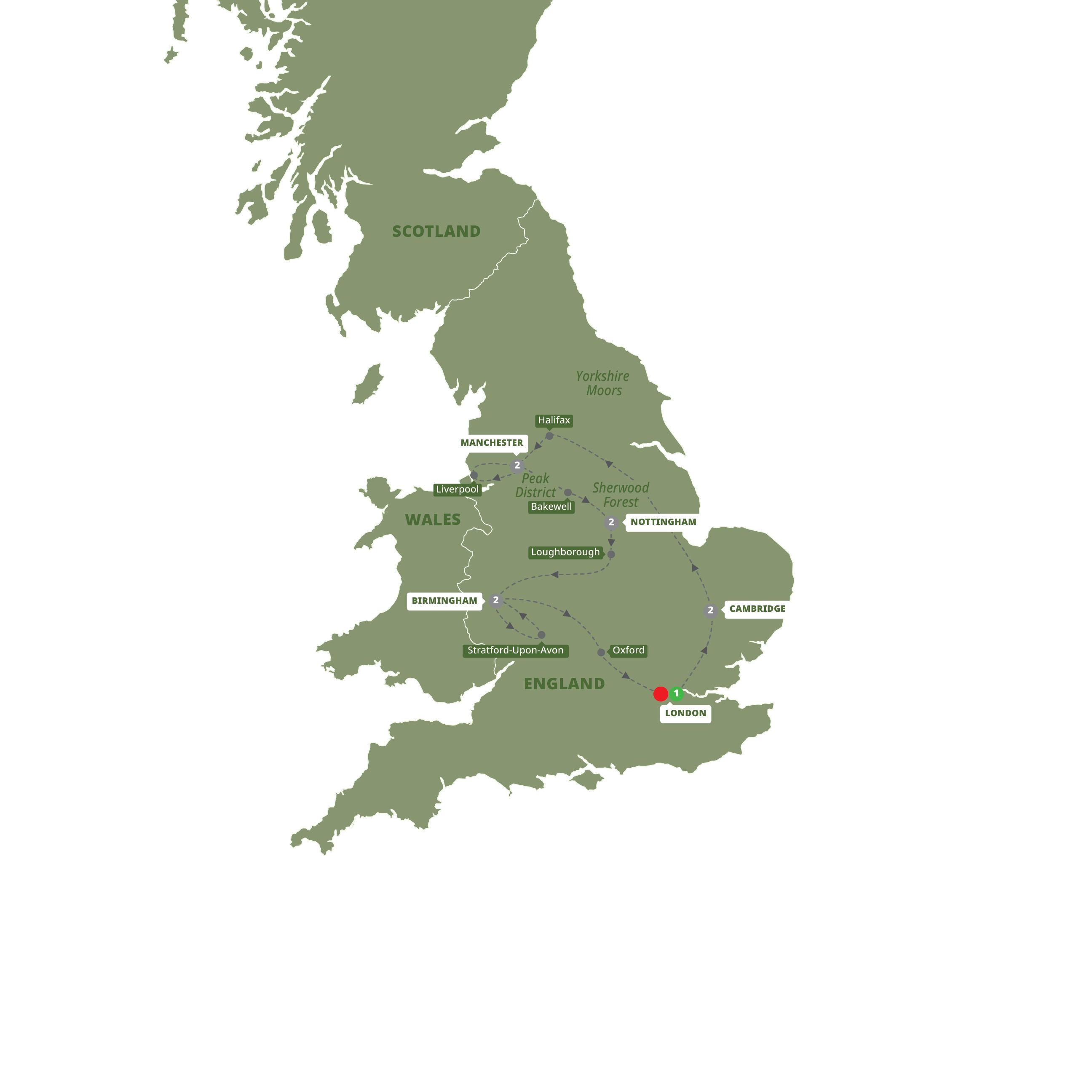 Discover the country’s most iconic sites and the stories behind them on this tour of England. Explore London’s landmarks, walk through university towns like Oxford and Cambridge, and visit the landscapes that inspired legends from Robin Hood to Harry Potter. Travel through the Peak District, stop in market towns and enjoy local flavours along the way. You’ll find yourself on an unforgettable journey through the heart of England.