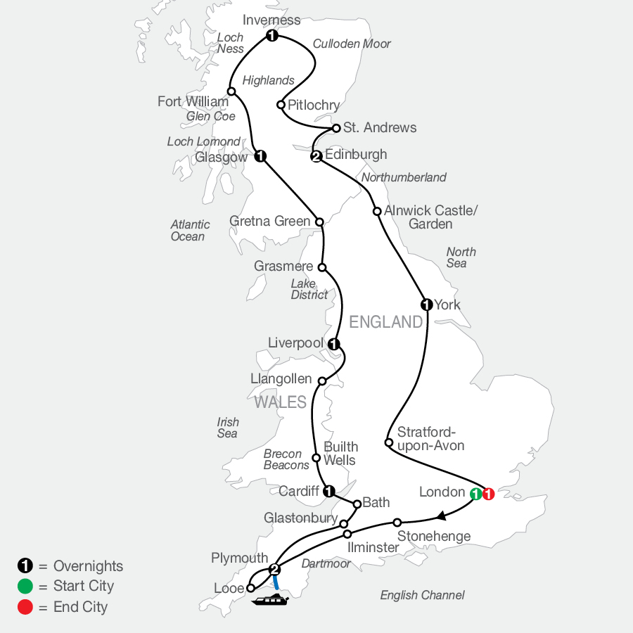 Thrones and scones. Hops and scotch. Rock stars and famous rocks. They’re all included on this enthralling and encompassing tour of Britain. Pack your tweed and tartans for the best of London and country, the Scottish Highlands and Lowlands, and the enchanting villages and valleys of Wales, and prepare to be swept away like a runaway bride at the elopement capital of Gretna Green. The castles and cathedrals of London, Edinburgh, and Cardiff, as well as the charming pubs on every corner, will steal your heart away. With visits to the baffling boulders of Stonehenge, the battlefield of Culloden Moor, Shakespeare’s birthplace of Stratford-upon-Avon, and The Beatles’ home city of Liverpool, this tour of Britain promises rocking discovery and enlightenment, not to mention honorary degrees in ancient history, English literature, and music appreciation.
