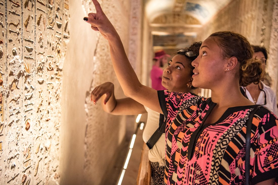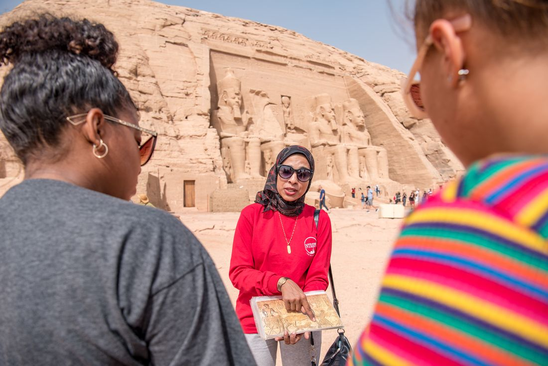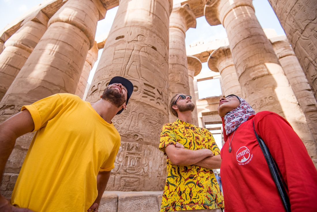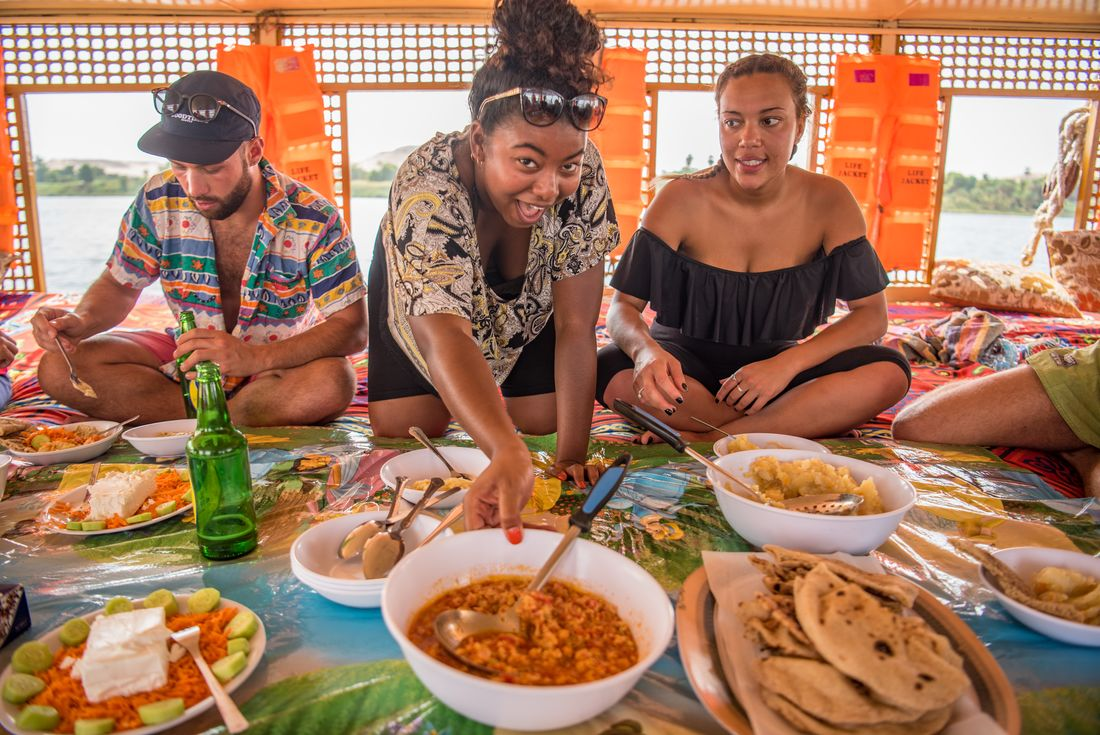 After breakfast this morning, it’s time to tick something huge off your bucket list. Drive out to the edge of the desert and explore the Great Pyramids of Giza – one of the famed ancient Wonders of the World – and the nearby Sphinx (nobody's quite sure how it lost its nose). A guy called Khufu was responsible for building the Great Pyramid – it’s 4500 years old, 146 m tall, and made from 2.3 million blocks weighing around 2.5 tonnes each. He even got a 9 cm statue to commemorate him – lucky him! You can marvel at their size up close or take an epic pic from a distance, with Cairo in the background. Later, you’ll have free time to continue exploring how you’d like – maybe visit the Egyptian Museum, home to one of the world's greatest collections of ancient artefacts, or head to the Valley Temple of King Khafre (Chephren). In the evening, it's time for your sleeper train to Aswan where you’ll spend the night.