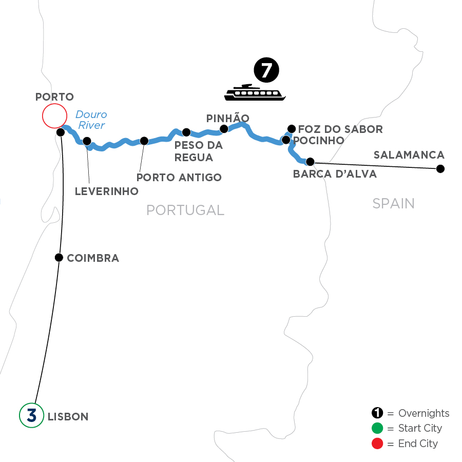 Enjoy a peaceful stroll through the quaint riverside town of Pinhão or consider joining an optional excursion to learn about the Douro Valley’s “liquid gold” at a traditional olive-oil mill.
