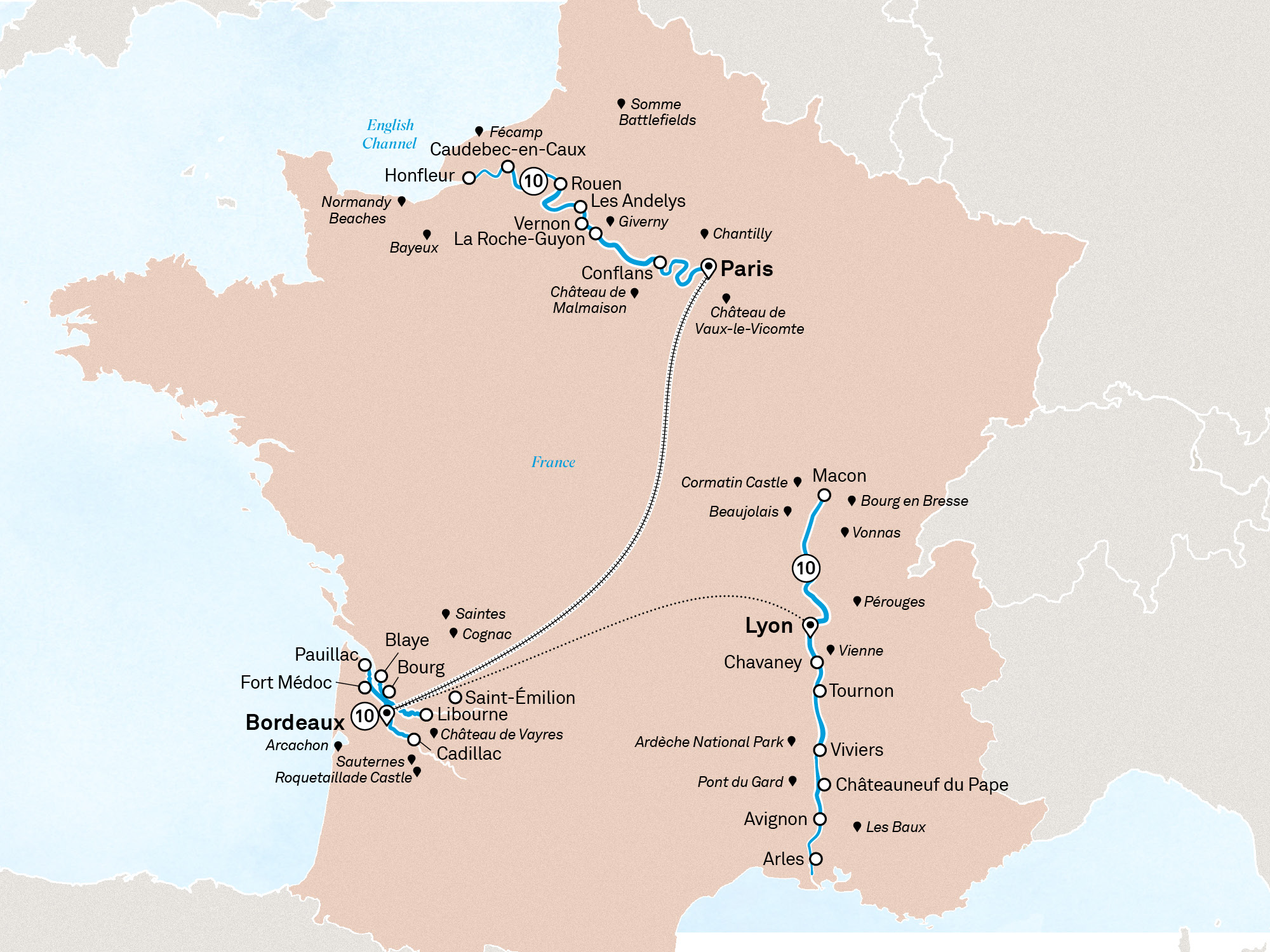 Your journey concludes this morning. Disembark after breakfast, taking with you many wonderful memories of this unique part of France. Transfer to Paris airport or train station for your onward journey.