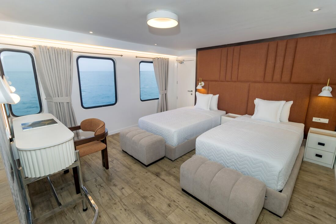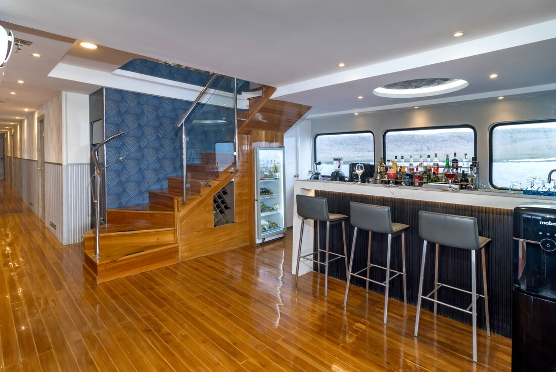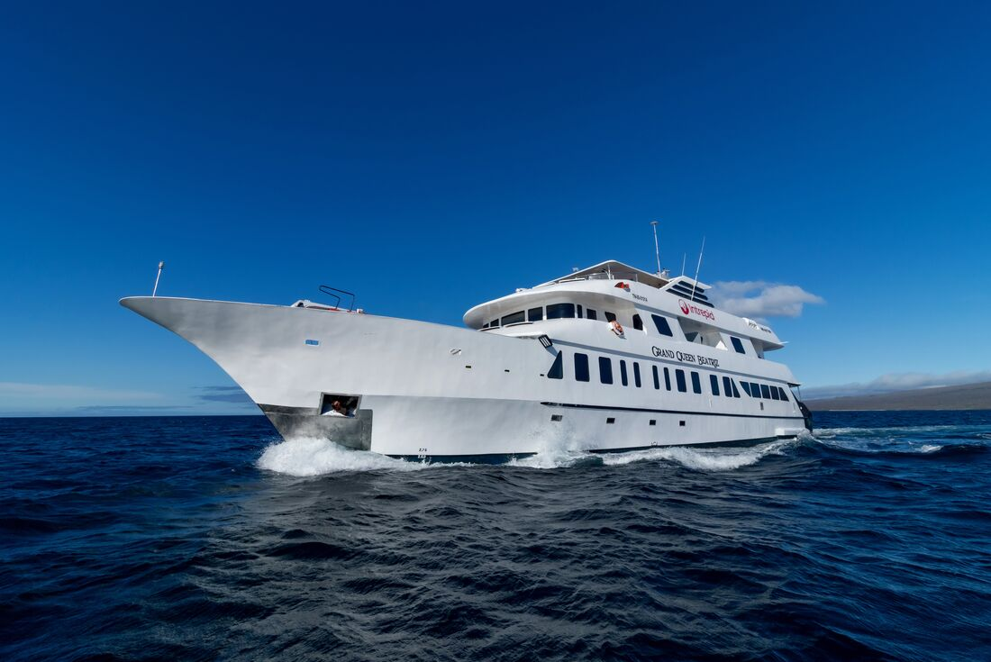 You have a very early start this morning (maybe as early as 4 am, depending on flight times) as you head into the Galapagos. Transfer to Mariscal Sucre International Airport (Quito Airport), with a boxed breakfast on the way. When you arrive, you’ll meet your naturalist guide in the arrival hall. Transfer a short distance away to Isla Baltra, where you’ll board your home for the adventure – M/Y Queen Beatriz. Once on board, settle in and then have lunch with your group. After, you’ll sail to Punta Carrion – on the eastern side of the Itabaca Channel that separates the islands of Baltra and Santa Cruz. This is a shallow and protected cove, ideal for your first snorkel and swim in the Galapagos! From the vantage point of your boat, wildlife is plentiful, so keep your eyes peeled for occasional sights of blue-footed boobies, Galapagos herons and great blue herons, while under the surface swim rays and white-tipped reef sharks. Tonight, you’ll have a welcome cocktail during the crew’s onboard presentation.