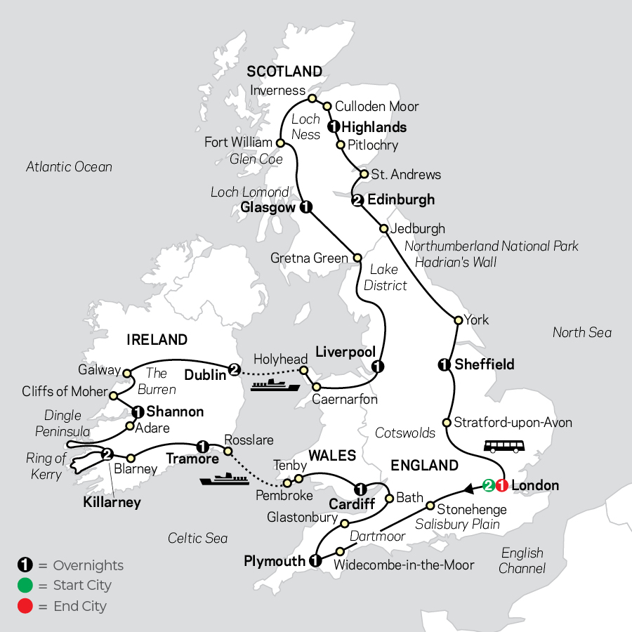 Bustling cities, smaller towns, historic sights, breathtaking landscapes, and much more are offered on this incredible Britain and Ireland tour.