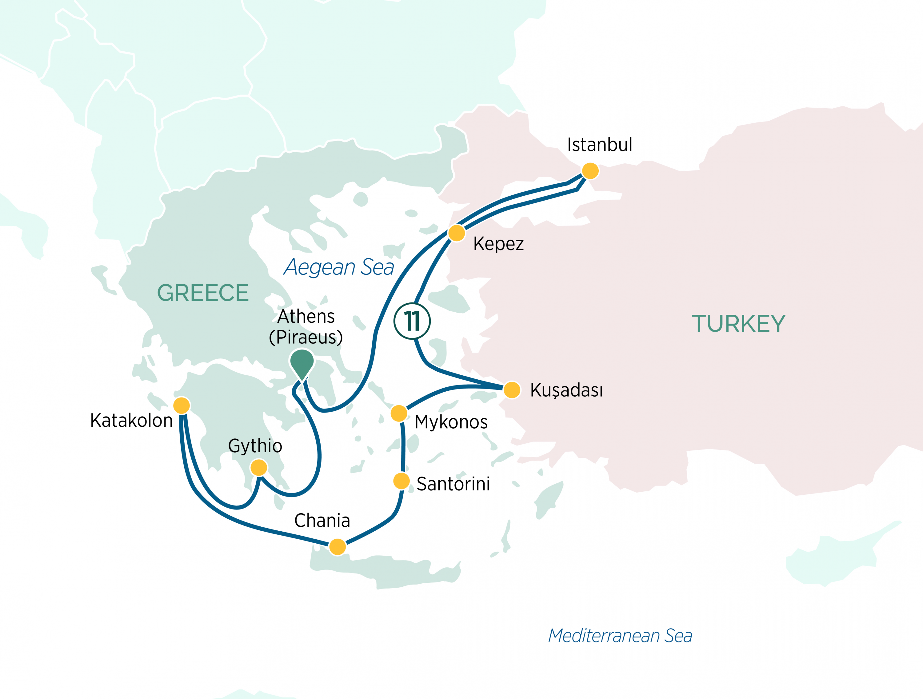 Your luxurious yacht cruise concludes in the Greek capital, Athens, the birthplace of democracy and Western civilization, where you’ll be transferred to the airport for your return flight home or to continue your holiday.
