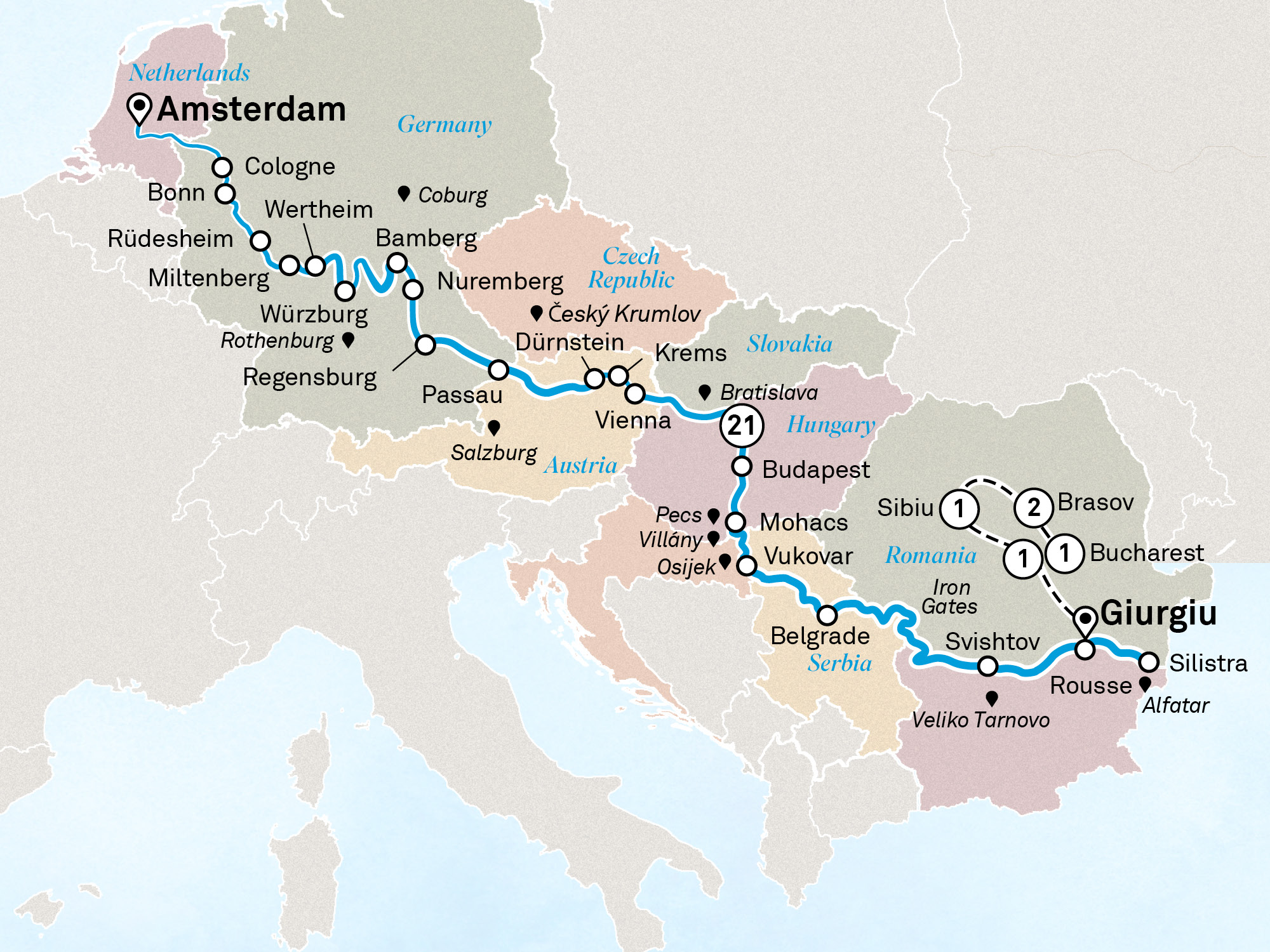 You will arrive in Regensburg today. Boasting a staggering 2,000-year history, Regensburg has one of Germany’s best preserved medieval town centres, with more than 900 of its Romanesque and Gothic buildings listed as World Heritage sites. Within its narrow laneways, the city lays claim to having the highest concentration of bars in the country.