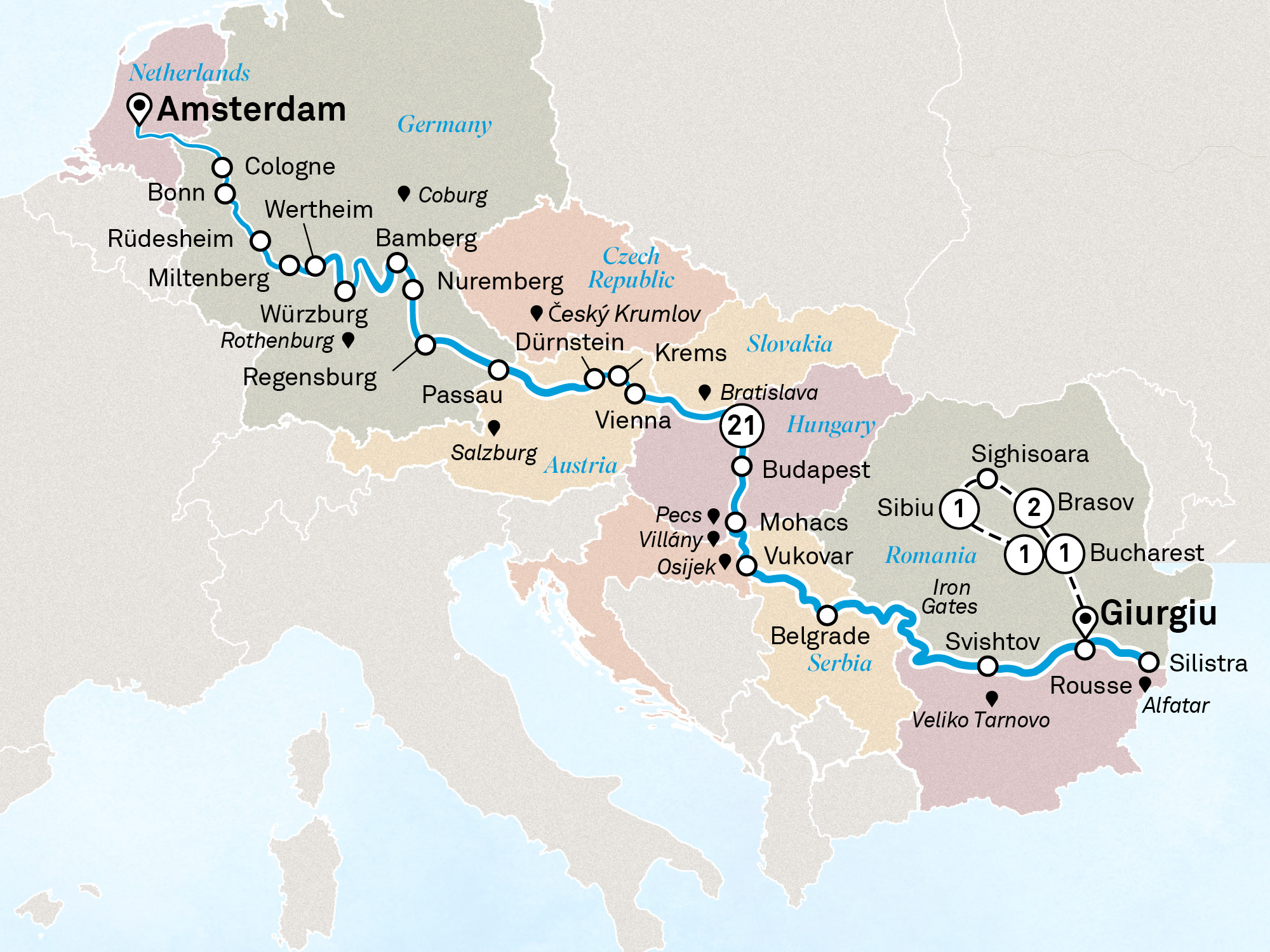 Your journey concludes this morning in Amsterdam. After one final breakfast on board, depart with a lifetime of memories.