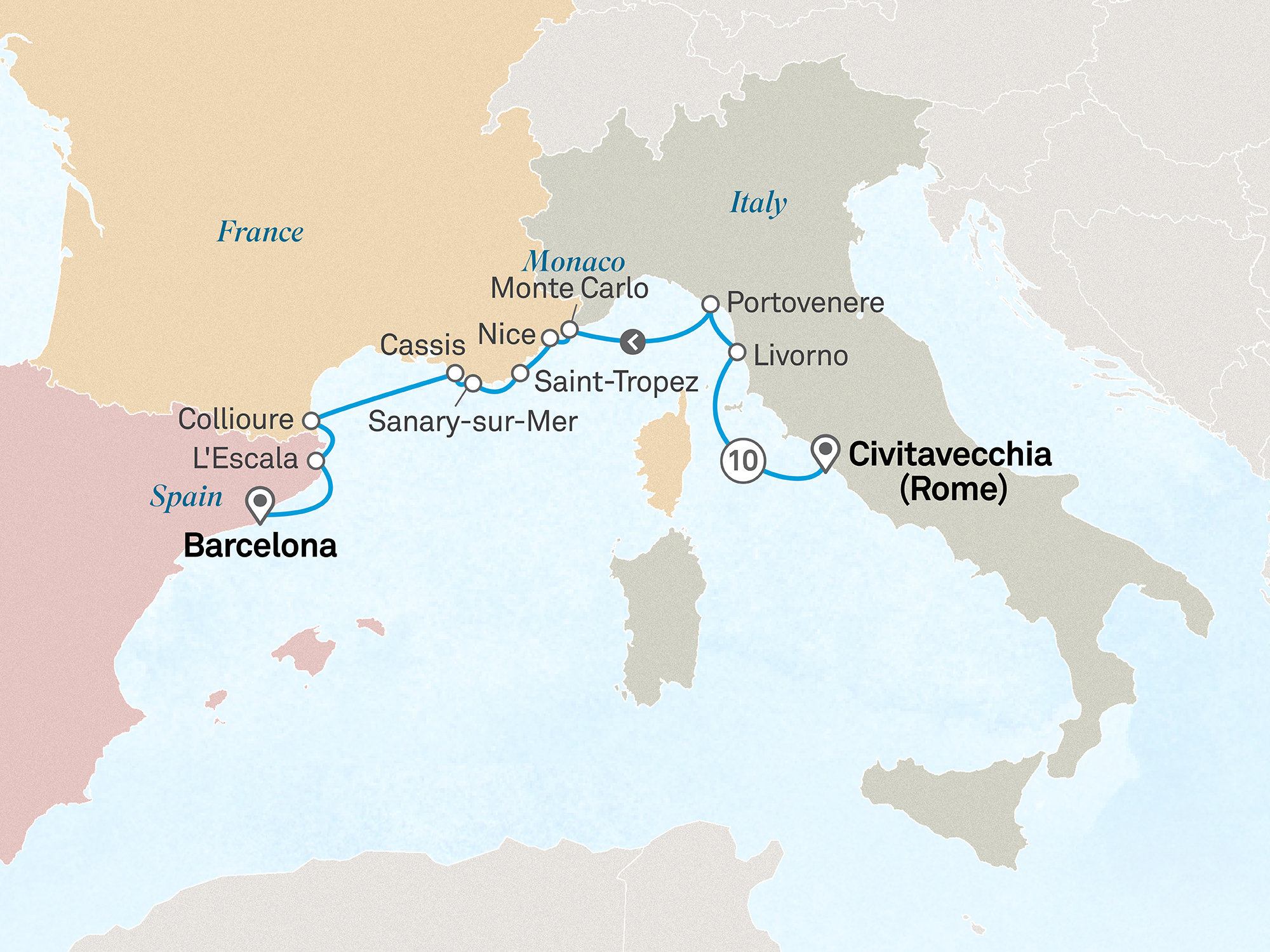 This morning, glide into another of the Mediterranean’s stunning deep-water harbours. Collioure is adorned with small beaches, castles by the sea and pink-domed bell towers. Known as the Pearl of the Vermillion Coast, Collioure has azure waters lapping pebbled beaches and pastel houses surrounding sun dappled squares. Walk through the town and lose yourself on the streets lined with cafes and gelato shops. With a mix of French and Spanish influences, Collioure is famed for its wine and salted anchovies, both of which are exported all over France.