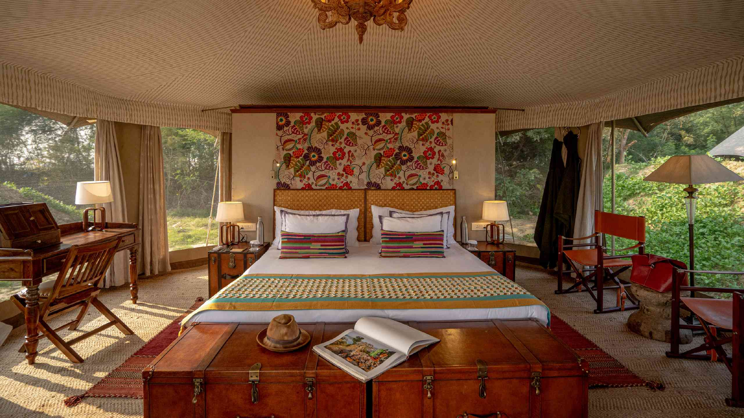 Once we’ve enjoyed a hearty breakfast, we’ll farewell the beautiful city of Agra for Ranthambore, making a delightful cultural detour through Gothdi village near Kalakho. Jumping into the back of a Jugaad (an open-top truck affectionately known as the ‘Village Mercedes’), ride through open countryside and rustic trails for a fascinating glimpse into the heart of rural India — traditional homes, friendly smiles and perhaps even a warm welcome into a local home for a cosy cup of chai! Leaving the rustic life in our rearview, we then make our way to the nearby Umaid Lake Palace. This heritage retreat is spread over a twenty-acre organic farm, providing a lush backdrop for a delightful lunch. With our appetite satisfied, we’ll continue our journey to Ranthambore, one of India’s most renowned wildlife sanctuaries. Well-known for its population of prowling Bengal Tigers, Ranthambore National Park is set against the Aravalli mountains and stretches across 392 square kilometres. A tangle of lakes and forests, watched over by the ancient Ranthambore Fort, the park provides a lush habitat for leopards, hyenas, sloth bears, sambar deer, langurs and a spectacular array of birdlife. Deluxe Experience Experience two nights in a luxury tent nestled within the wild sanctuary of Ranthambore.