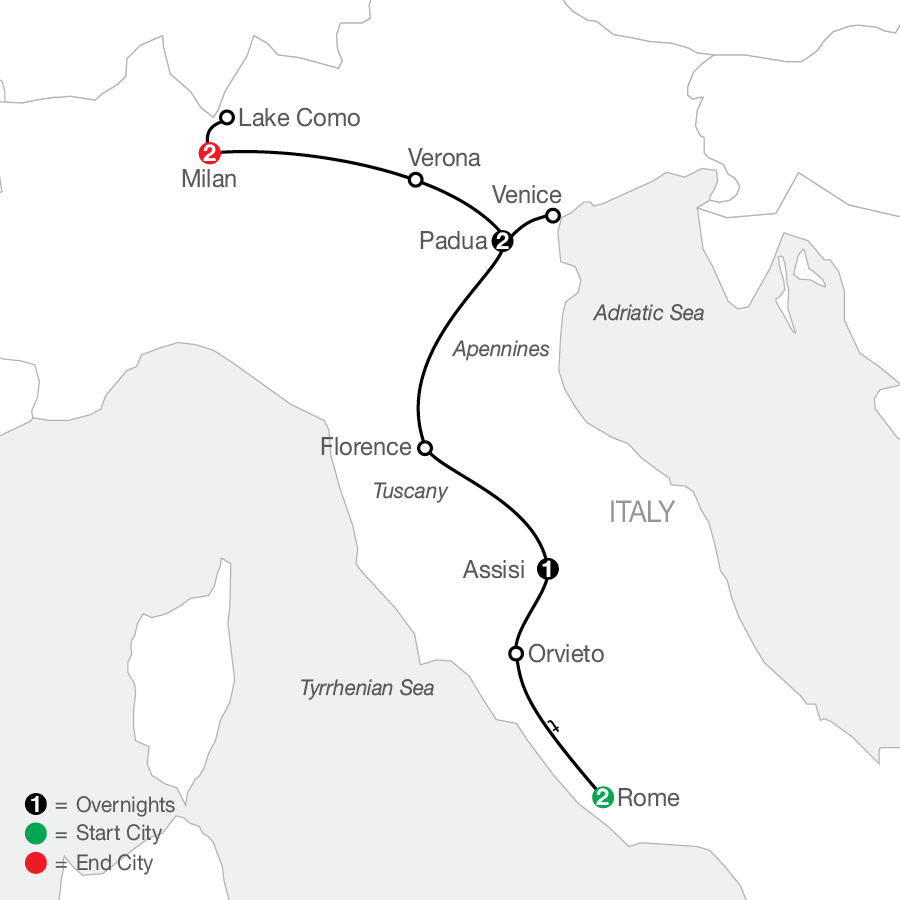 Explore hidden cobblestone streets, watch the world go by from a sidewalk cafe, sail across beautiful blue waters and delight at the local specialties on this incomparable Italian vacation. If you’ve envisioned it, you’ll see it, hear it, experience it, and taste it on this scenic and scintillating tour of Italy—from the historic Colosseum of Rome to the song-filled canals of Venice, the quiet back alleys of Assisi to the bold storefronts of Milan, and the sweet views of Lake Como to the bittersweet Aperol liqueur of Padua. Warm locals welcome you in each ancient city, medieval village, and indulgent resort, sharing with youth stories behind the architecture, the tales behind the sculptures, the meaning behind the brushstrokes, and if you’re lucky, the secret ingredients on your plate!