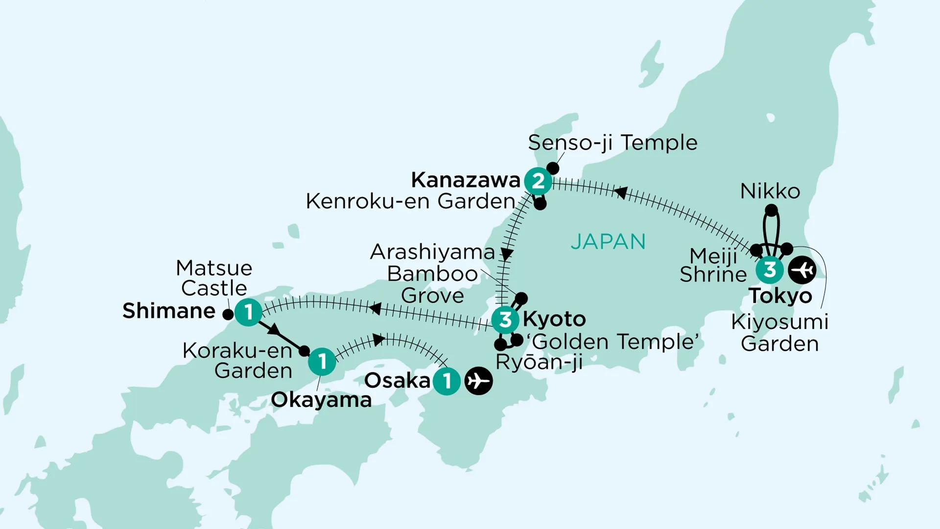 Travel to Mount Daisen this morning and see the autumn leaves of the surrounding landscape before continuing to Okayama. The city’s famed Koraku-en is one of Japan’s most significant gardens – its name means ‘garden of pleasure after’.