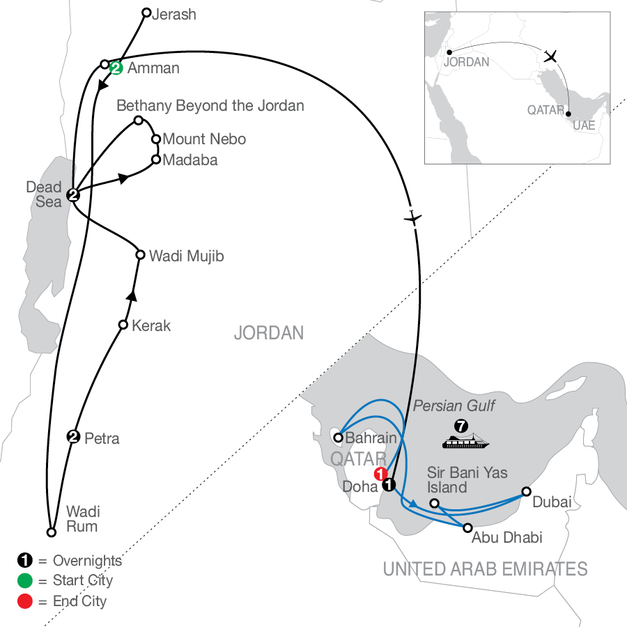 • Port days at leisure in Dubai, Sir Bani Yas Island, Abu Dhabi, Bahrain, and Doha