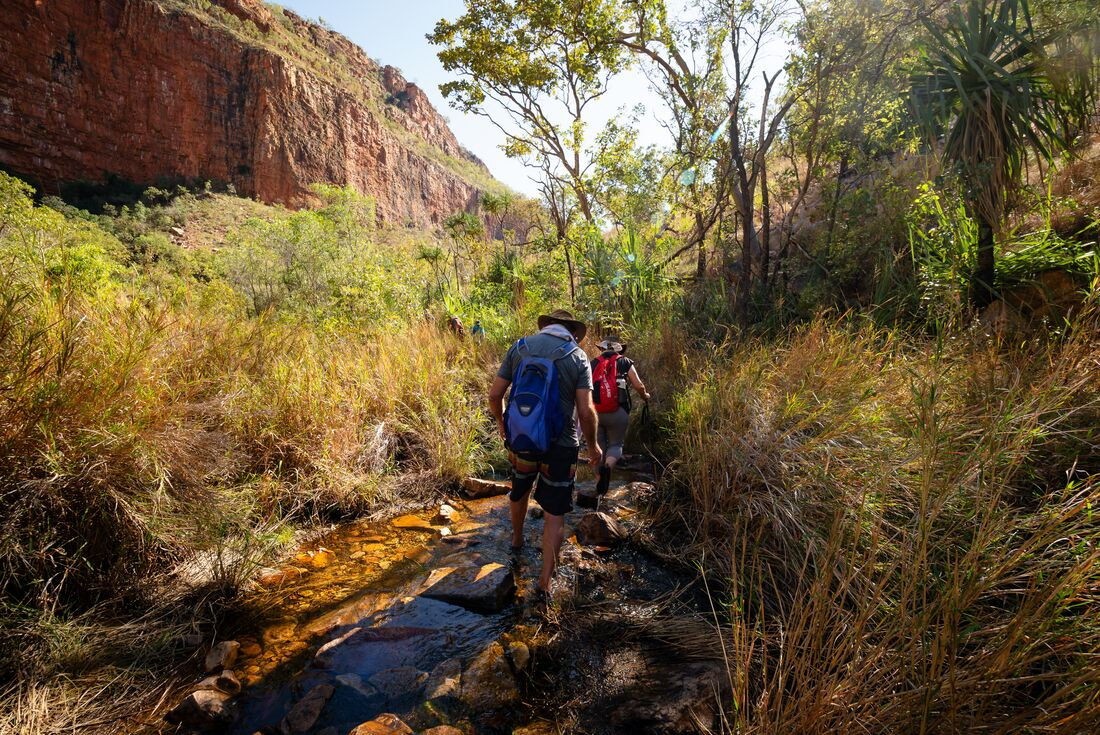 Welcome to Broome! Or Rubibi, in the language of the Yawuru people, who are the Traditional Owners of the land on which Broome is now located. Start your adventure straight away, setting off early this morning, and travel through the remote and beautiful Kimberley landscape. After crossing the Fitzroy River, visit the Boab Prison Tree in Derby. Then, wander around an art gallery before continuing along the Gibb River Road to Tunnel Creek. When you arrive, explore this 750 m long cave system carved through the Napier Range. As you walk, look out for the stalactites and a large variety of wildlife like bats and freshwater crocodiles, and hear the legend of Jandamarra – an Aboriginal freedom fighter who used the tunnel as a hide out in the late 1800's. Tonight, settle into camp near Windjana Gorge and watch as the stars come alive, away from the city lights.