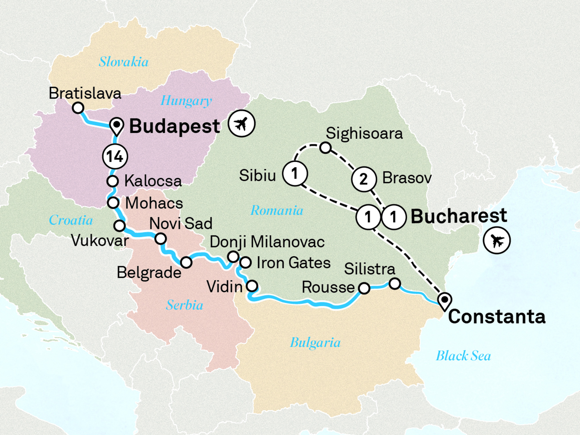 Your journey comes to an end this morning. After a final breakfast, transfer to Budapest Airport taking away a lifetime of wonderful memories with you.