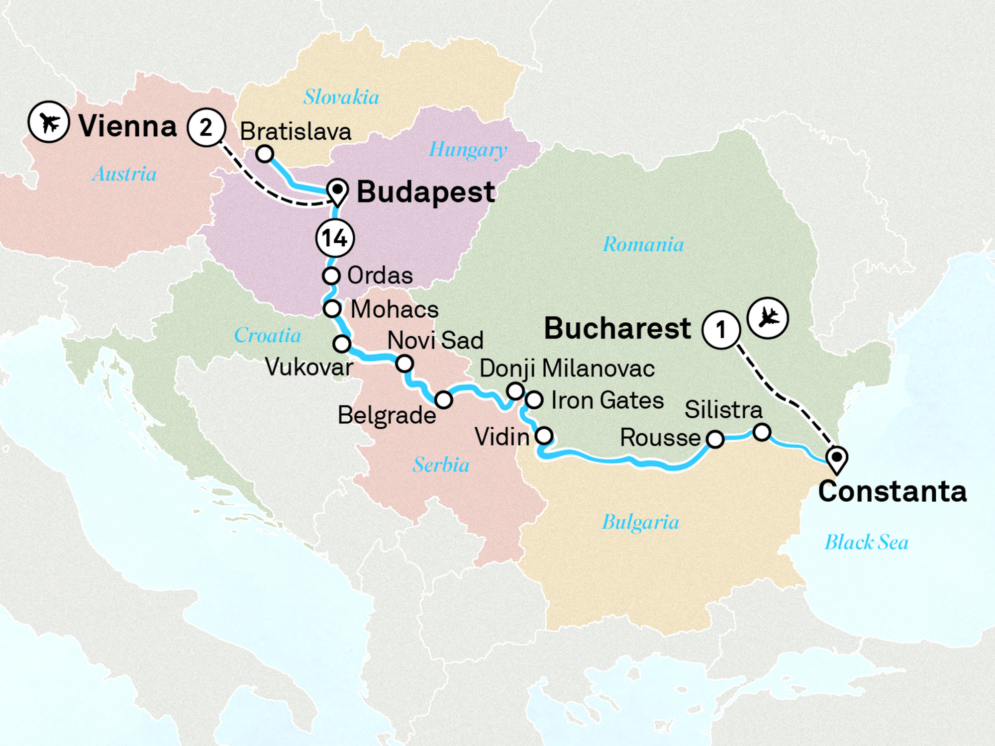 Following a guided tour of Bucharest this morning you will be transferred to Constanta where our friendly crew await your arrival and welcome you on board your luxurious Scenic Space-Ship.