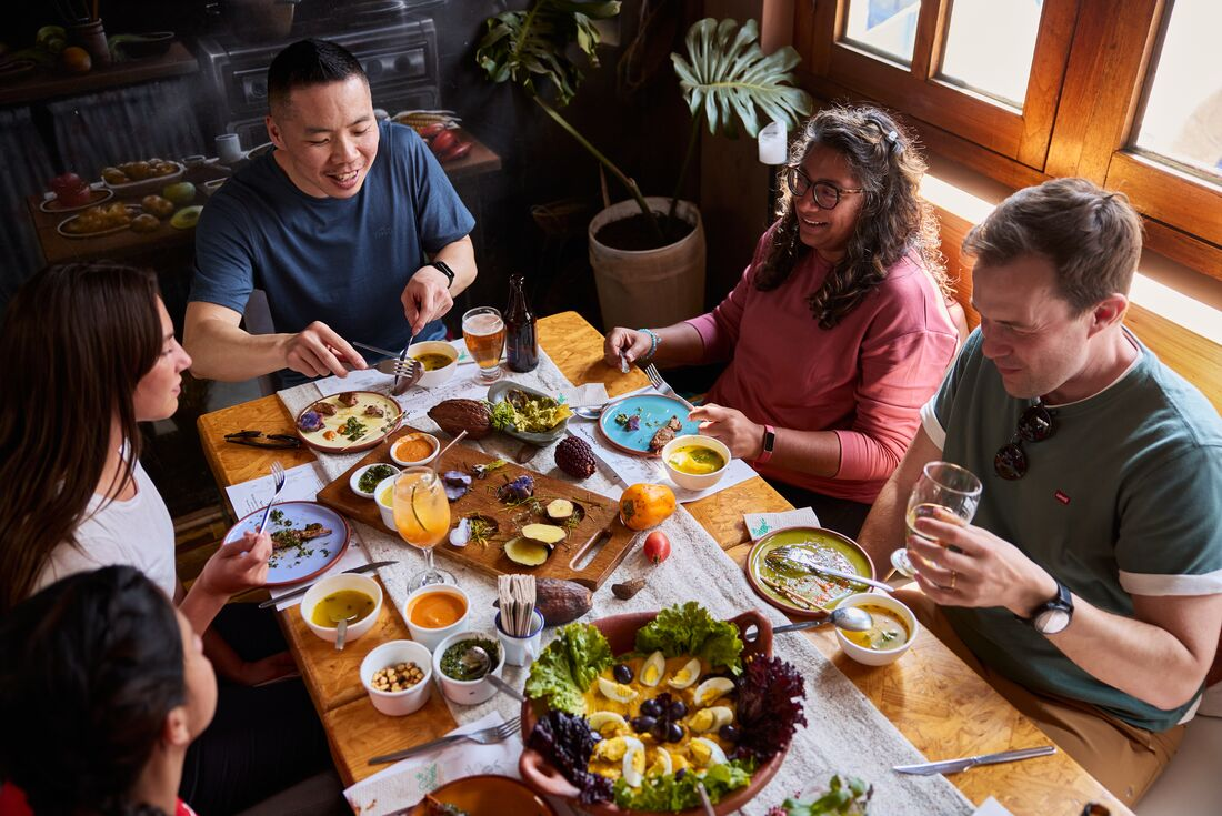 Take a two-hour boat tour to Islas Ballestas – home to diverse wildlife, including pelicans, red-footed boobies, flamingos, sea lions and penguins. Then, hop in a private van to one of the world's most mysterious archaeological sites – the Nazca Lines, stopping at the oasis town of Huacachina for lunch. Nazca dates back to the 2nd century BC, and thanks to dry desert conditions, mummies, textiles, ceramics and other relics have been remarkably well-preserved, providing archaeologists with insights into the pre-Inca civilisation. Head to the viewing tower or take an optional flight for even better views! At sunset, drive south through the desert to meet a local in their traditional mud house where you’ll share a pachamanca dinner (in the Quechua language, ‘pacha’ means earth and ‘manka’ means pot) – a classic dish of potatoes, meat and herbs baked with hot stones. Before digging in, you’ll experience a brief ceremony thanking Pachamama with chicha, or corn beer.