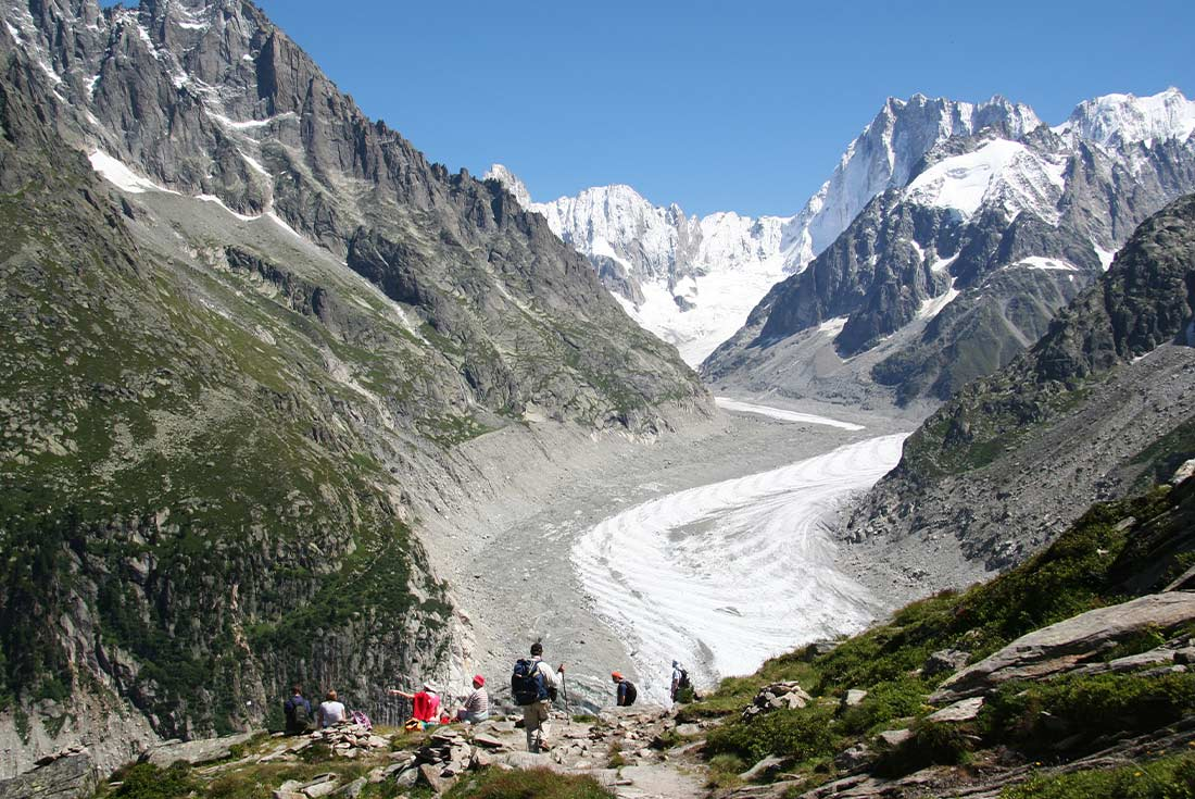 Today’s hike will lead you to Lac Blanc, also known as the mirror of Mont Blanc. First, climb into the mountains on the Flegere cable car, which offers amazing alpine views that can only be seen by those travelling this way. After your ride, begin your hike towards the lake – one of the most beloved and celebrated walking routes in the region. Follow a high balcony path while keeping an eye out for wildlife – marmots, ibex and eagles are all frequently spotted along this trail! When you arrive at Lac Blanc, take some time to admire the snowy peaks in the reflective water – this is one scene you won’t forget. Give your legs a well-earned rest and return via the Flegere cable car, descending into the beautiful valley below.