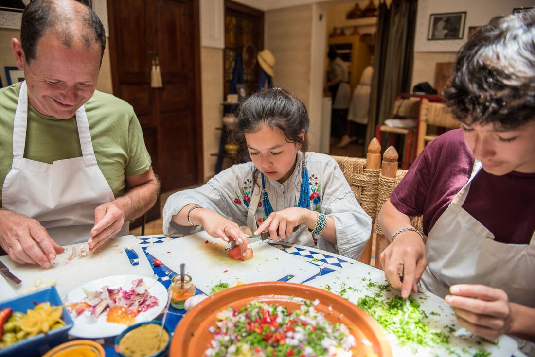 Follow the winding roads of the Atlas Mountains on your way to Marrakech this morning. You’ll stop in Ouarzazate, home to the Atlas Film Studios – one of the largest film studios in the world, earning Ouarzazate the nickname ‘Ouarzawood’. During your visit to the studio, the kids can explore the props and sets of ancient Egyptian temples, bazaars and fortresses, while the adults will love seeing some familiar sets from the likes of Gladiator, The Mummy and Game of Thrones. Then, continue to the UNESCO World Heritage-listed ksar (fortified village) of Ait Benhaddou. Explore the ancient clay buildings, then take part in an Arabic calligraphy class led by a local artisan. You and the kids will learn to write some Arabic letters, creating your own written keepsake. Continue your journey through the Atlas Mountains until you arrive in Marrakech. Check into your accommodation, then you’ll have some free time. Maybe kickstart your exploration of the city with a visit to Djemaa El Fna, the city’s bustling main square. At night, it comes alive with henna painters, performers and street food stalls.