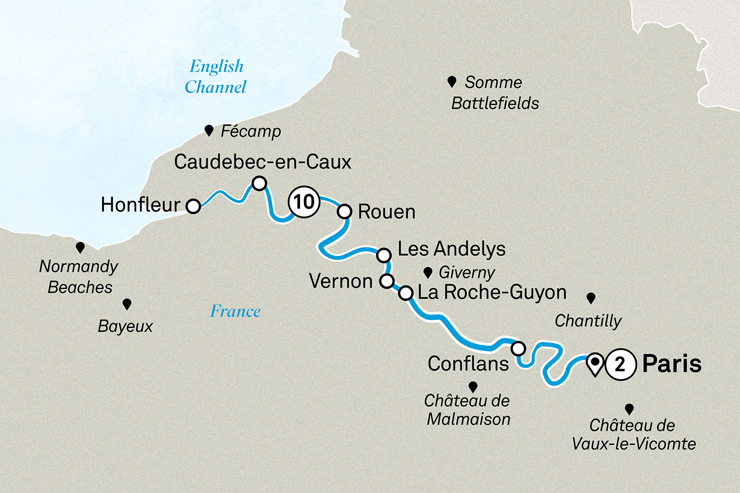 Enjoy a relaxed morning on board as you cruise gently along the Seine to Les Andelys. This exquisite waterside village dates back almost 900 years and is resplendent with well-preserved Norman-era houses and exquisite public buildings and overlooked by the imposing ruins of King Richard the Lionheart’s castle, Château Gaillard. Take a stroll alongside the river, admiring the striking limestone cliffs rising from it, or through the charming centre of town where the buildings are a living catalogue through time.