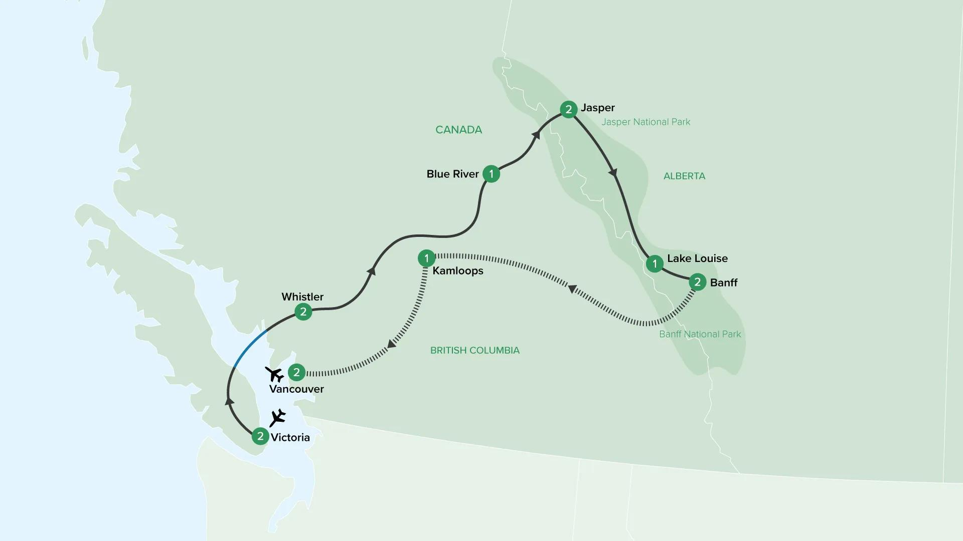 The day ahead promises stunning alpine scenery and adventure in the great outdoors. Follow the iconic Yellowhead Highway as you make your way to the picturesque Jasper National Park. Along the way, stop in Blue River for an Insider Experience and pass by the majestic Mount Robson, the highest peak in the Canadian Rockies. Later, arrive in the charming mountain resort town of Jasper.