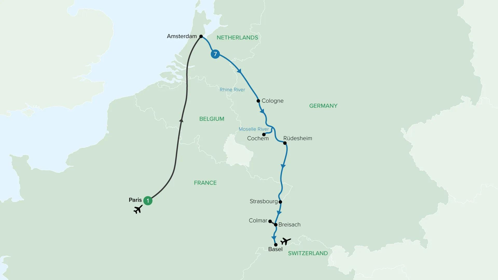 After breakfast on board, disembark and be transferred to Basel airport for your onward flight.