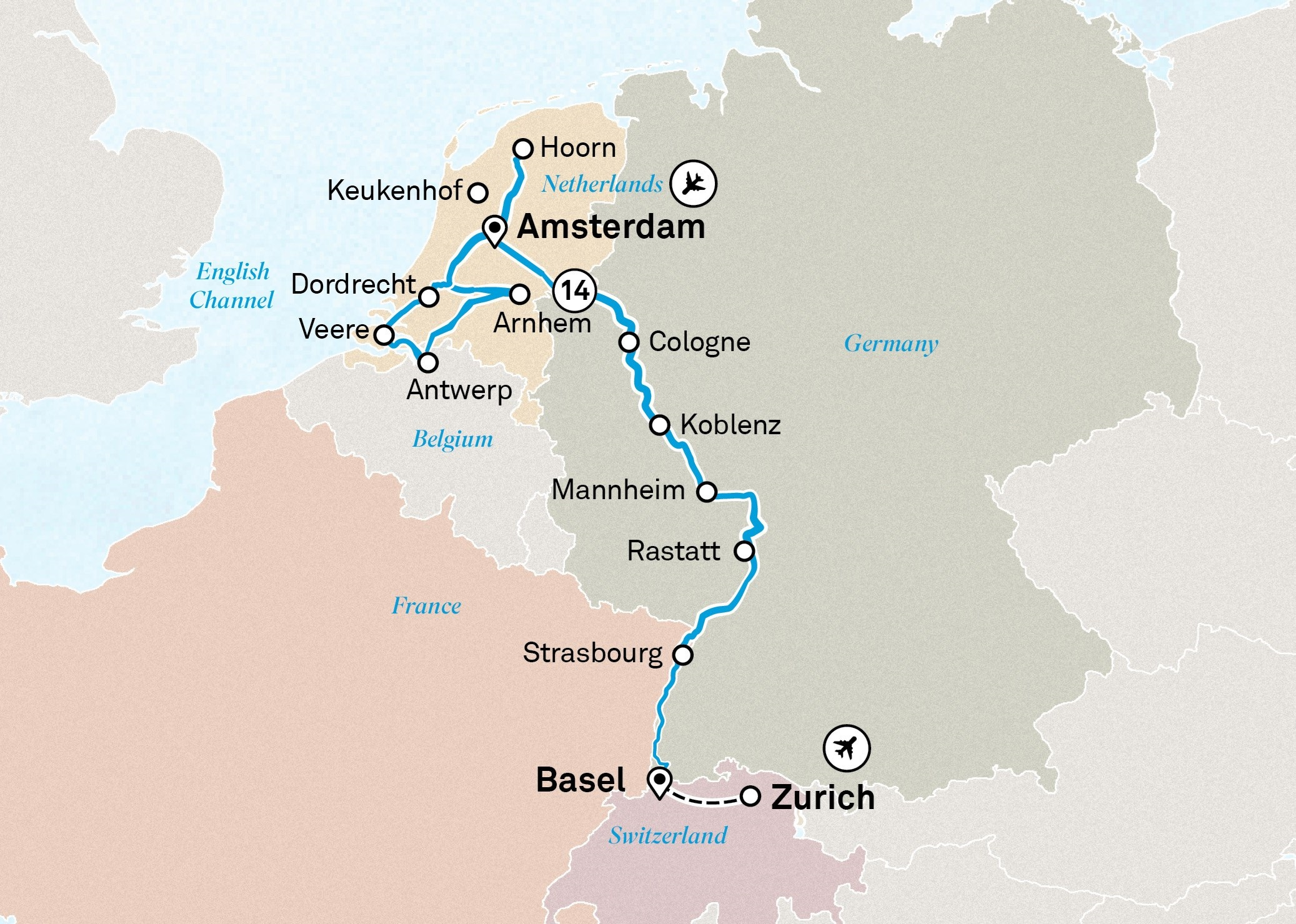 Your cruise concludes this morning in Basel. Enjoy one final breakfast on board, then disembark, taking with you lifelong memories of a remarkable journey.