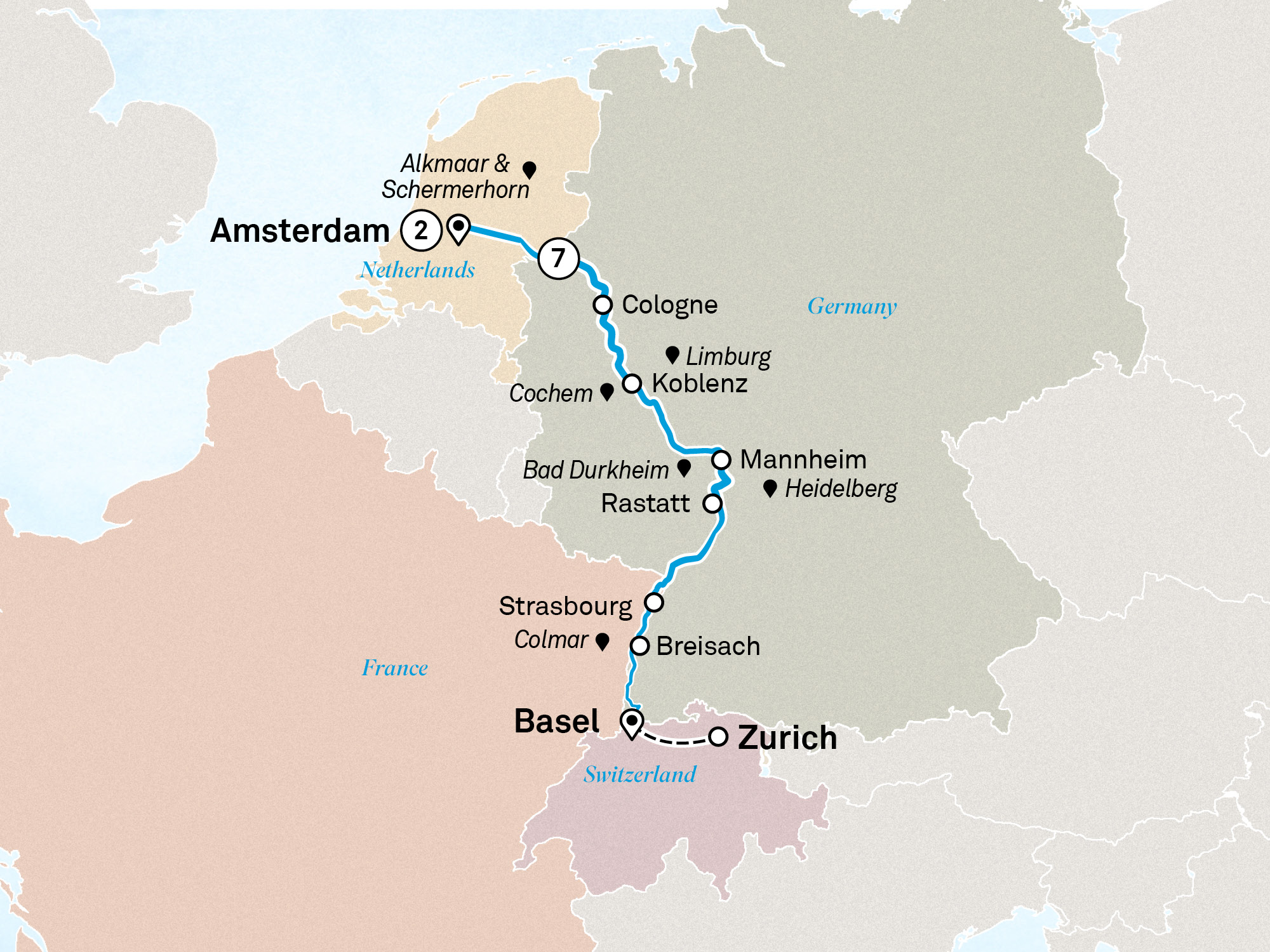 Welcome to Switzerland and the start of your European journey. Fly into Zurich then transfer to Basel, a centre of art and culture that sits on the banks of the Rhine River.