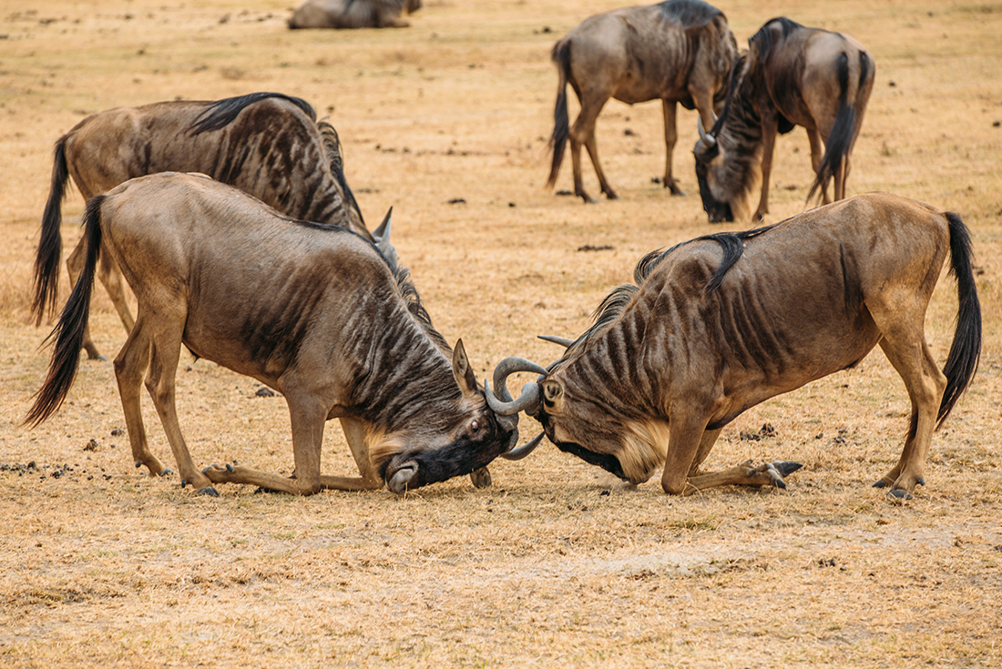 Get up early, put your camping and personal gear into a six-person jeep and head out for an excursion into the Serengeti via the Ngorongoro Crater. Enjoy a safari in the crater, spending 3 to 4 hours exploring this incredible, perfectly intact volcanic caldera. Watch for black rhinos, lions, leopards, elephants, impalas, zebras and hippos. The crater floor offers excellent game viewing all year round (some 30,000 animals live here) and the photo opportunities are unrivalled. Next, it's on to the wide-open plains of the Serengeti. Green after the rains, brown and burnt in the dry season, this is perhaps the quintessential image of Africa – the home of thousands of hoofed animals and fierce predators. Your campsite is within the Serengeti itself, so listen out for the sounds of nocturnal animals as you drift off to sleep.