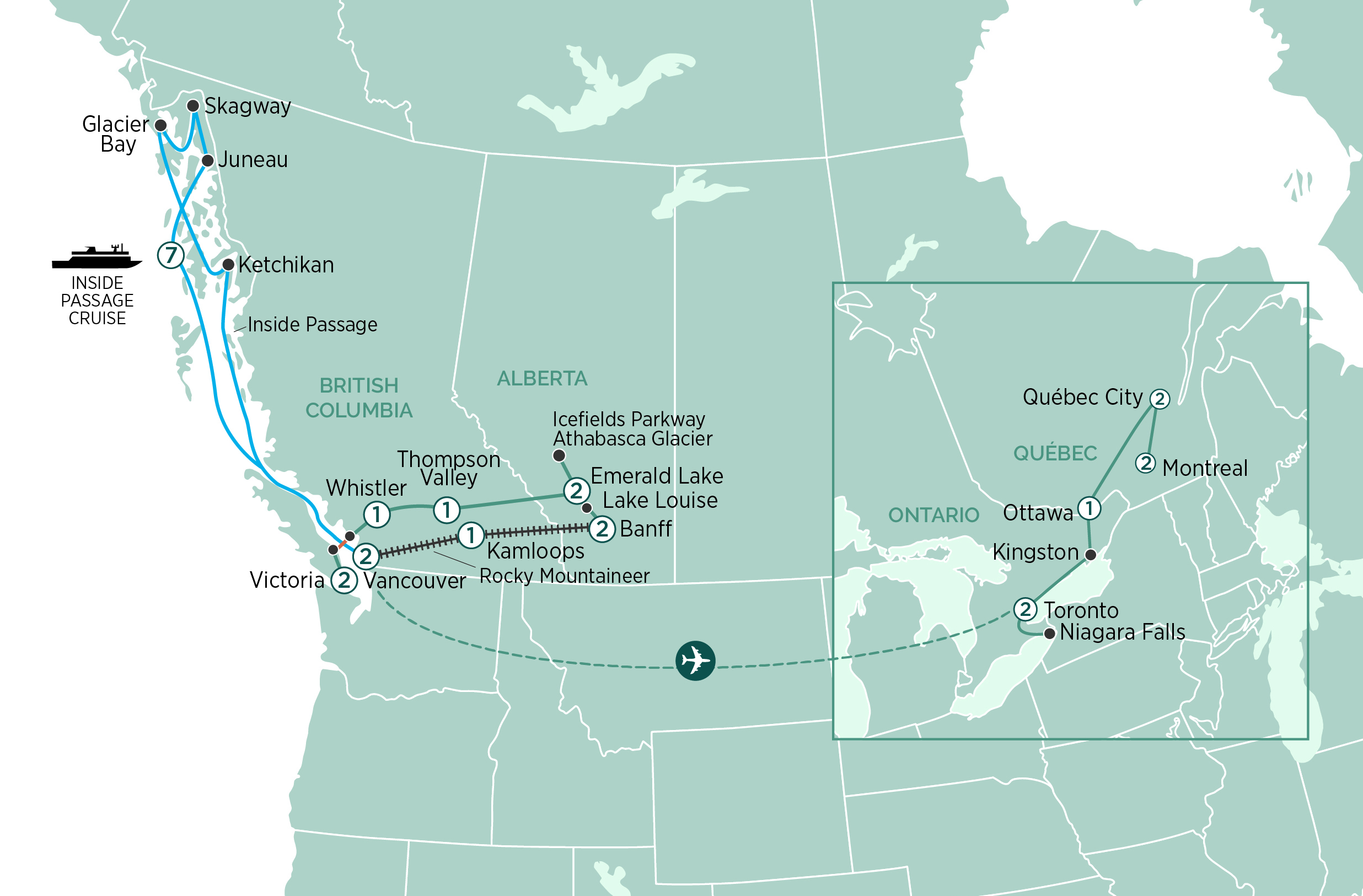 Disembark and transfer to Vancouver Airport to board your flight to Toronto (flight not included; book your flight after 12:30pm).