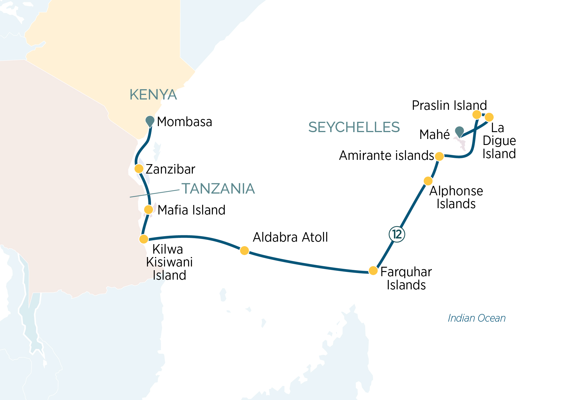 Your cruise begins in Mombasa, a coastal city in southern Kenya that was the first capital of British East Africa. It’s a melting pot of cultures from all corners of Africa and the Indian Ocean. Here you’ll be transferred to your Emerald Cruises luxury yacht and embark on your discovery of the Indian Ocean and Seychelles.