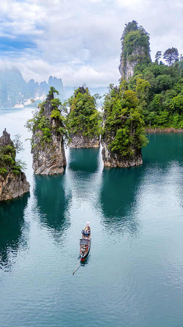 After an included brekkie, we’ll take one last look at our treehouses (aka the hotel of 10-year-old you’s dreams) before diving deeper into Khao Sok National Park. Keep your face pressed to the window as we pass rugged limestone mountains, ancient caves and trees as tall as skyscrapers. Later we’ll hop on a local longtail boat and hightail it (see what we did there?) to tonight’s accommodation: a traditional raft house on the twinkling Cheow Lan Lake. Before you fall asleep to the sound of gently lapping waves, there’s time for an afternoon wildlife cruise. Prepare to switch off and completely immerse yourself in nature.