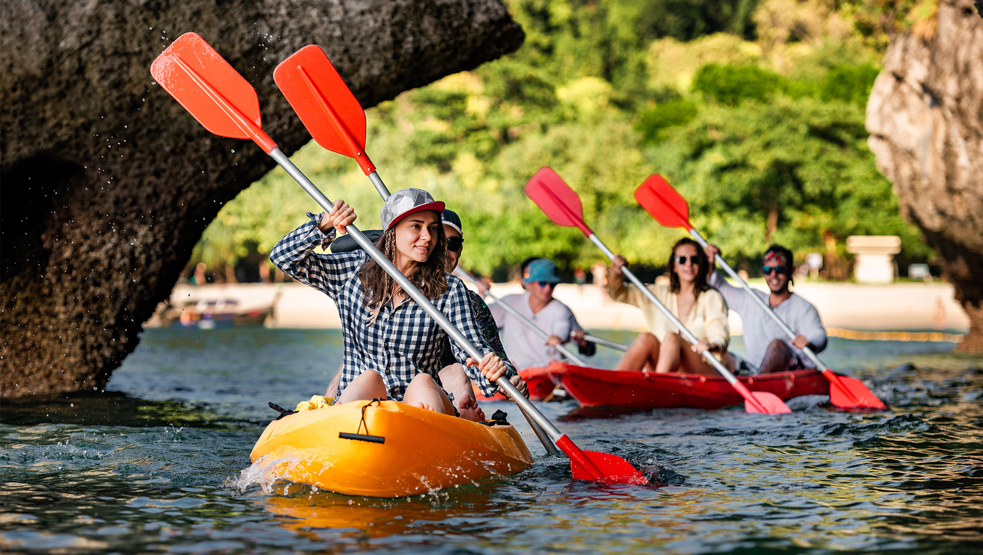 Fuel up with another tropical fruit-laden breakfast before we activate explorer mode. First: soak up Khao Sok’s misty jungles, magical peaks and awesome wildlife (think sun bears, tapirs and even clouded leopards) on an early morning safari. Afterwards, jump in a canoe or kayak and weave around Cheow San Lake’s ultra-dramatic rock formations. Then, we’ll be making tracks for Krabi, so grab some fluids, soak up the tropical views, and put the lingo skills of your travel buds to the test. When we arrive, you’ll have the evening to get your bearings. Need some recs? Your Trip Leader’s got them by the bucketload.