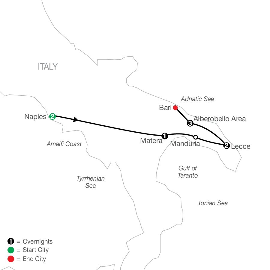 Your vacation ends with breakfast this morning. (B) (Nearest airport is Bari)