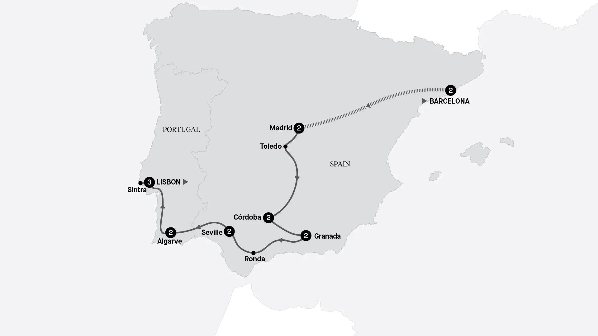Spend 16 days discovering the best Spain and Portugal have to offer. Marvel at Gaudí's masterpieces in Barcelona, explore the Prado Museum in Madrid, experience the passion of flamenco in Granada, and admire Seville's Moorish architecture. Cross into Portugal's sun-drenched Algarve coast, then uncover the highlights of vibrant Lisbon and spellbinding Sintra.