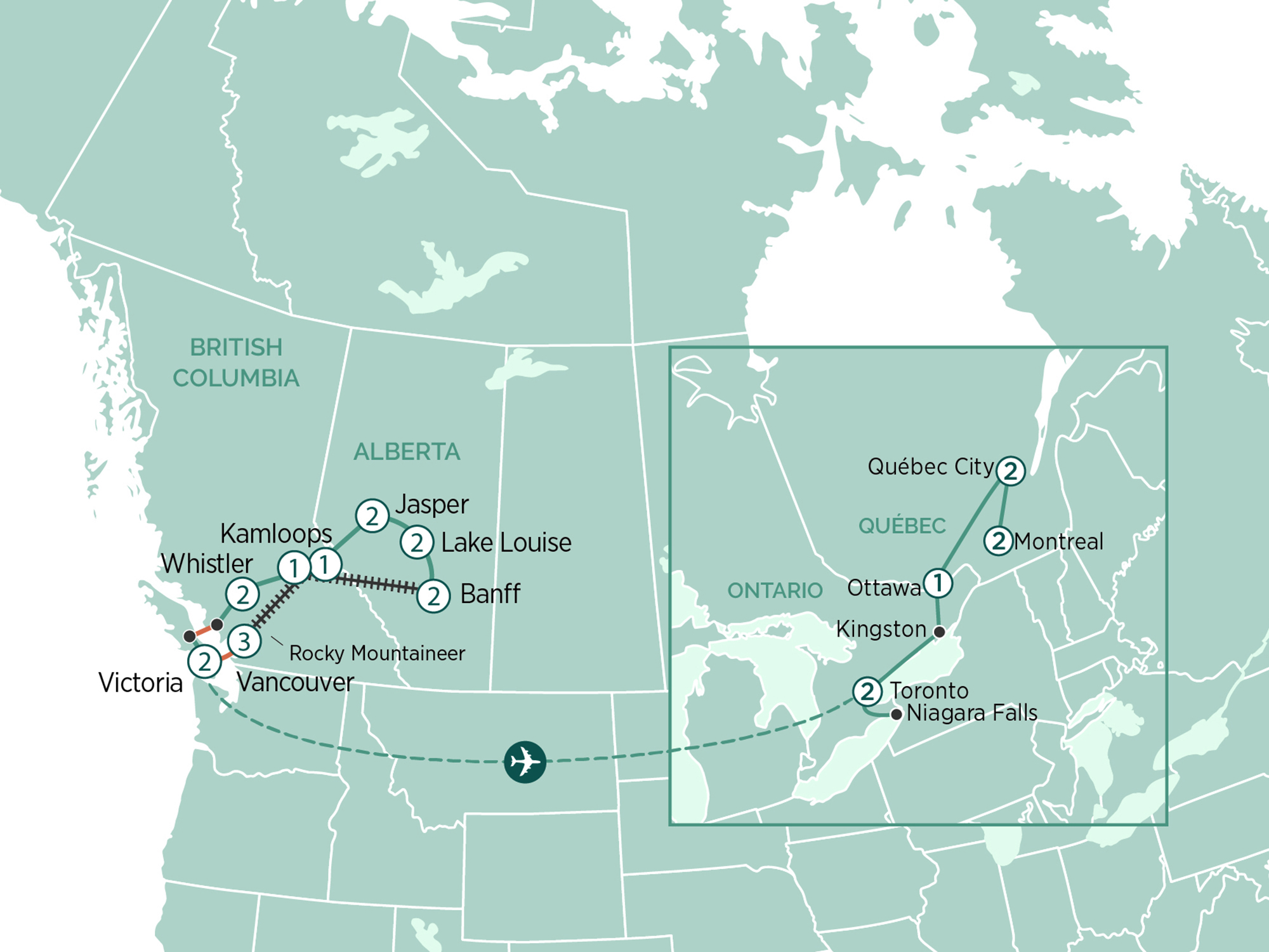 Transfer to Victoria Airport to board your flight to Toronto (flight not included in land only bookings).