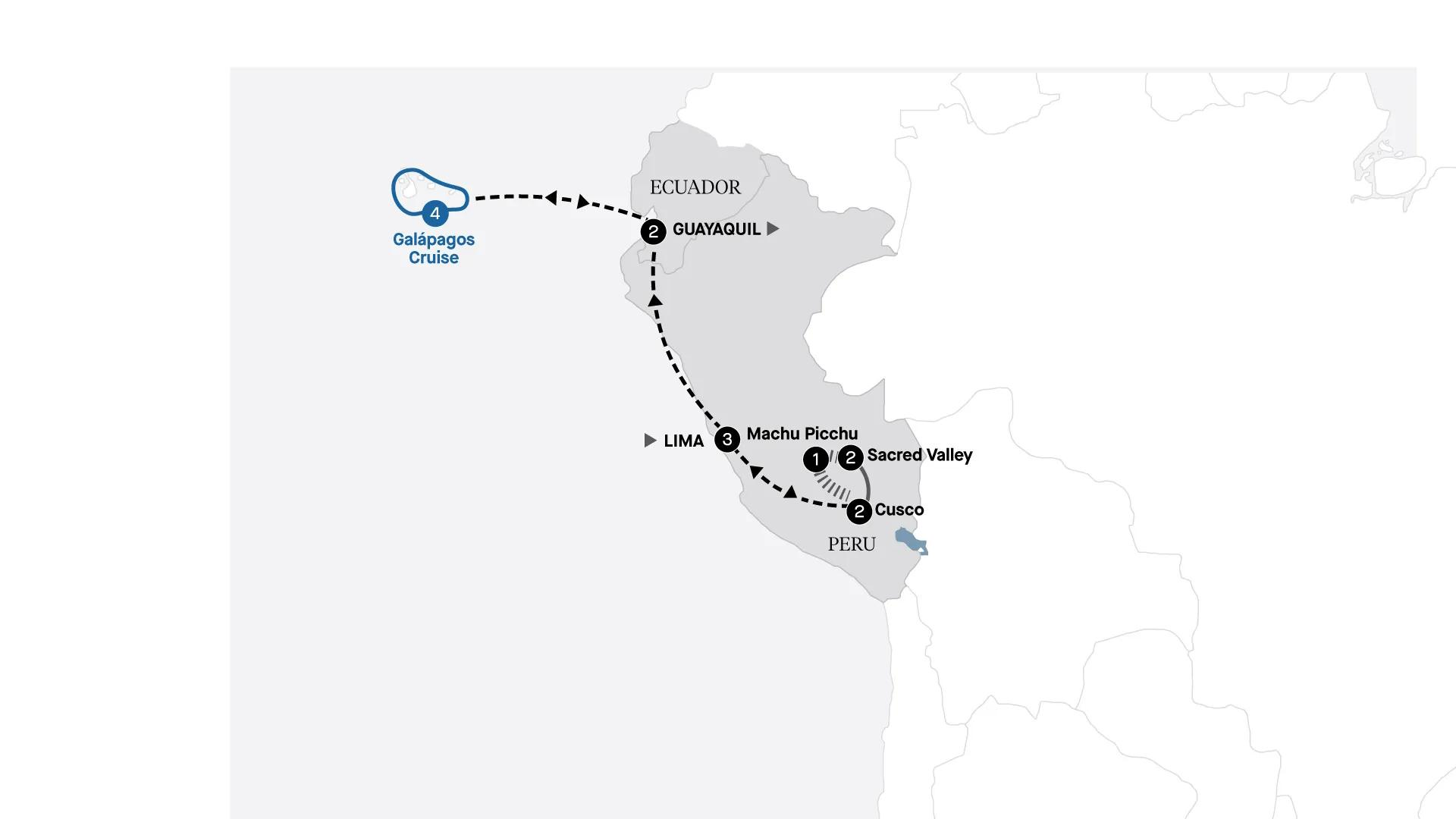 Connect with the heart and soul of Peru, from visiting a giant corn farm in the striking Andes to exploring ancient salt mines, circular Inca terraces and of course, the legendary Machu Picchu amid the clouds. Then, continue to Ecuador for a four-night luxury cruise through the Galápagos Islands, where remarkable wildlife and otherworldly landscapes showcase the true splendour of nature.
