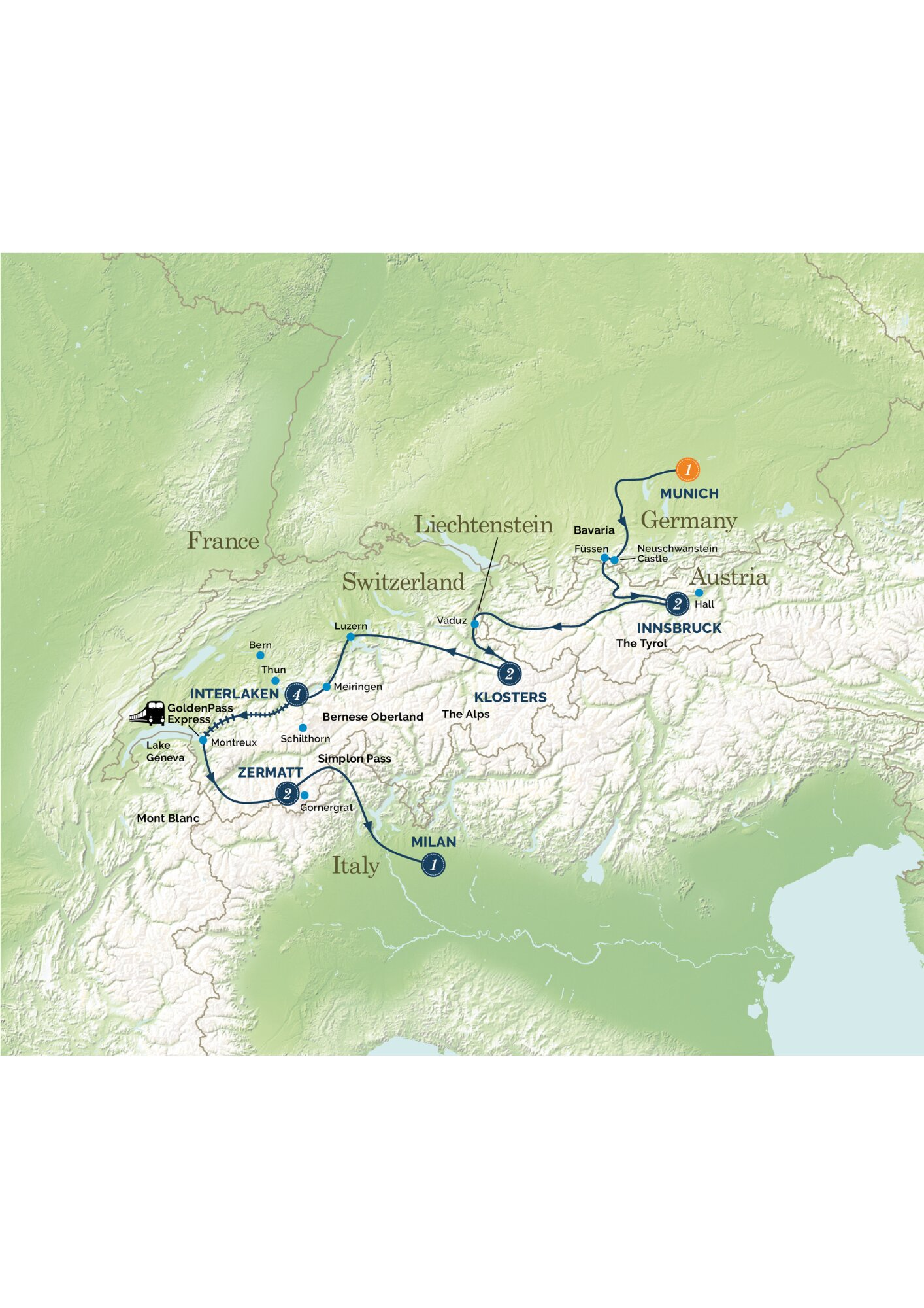 Crossing the mountains and valleys of Austria we visit the city of Vaduz, capital of the Principality of Liechtenstein, a tiny country on the border of Switzerland. Mountains soaring all around us, we continue to the exclusive ski resort of Klosters, where we stay the next two nights.