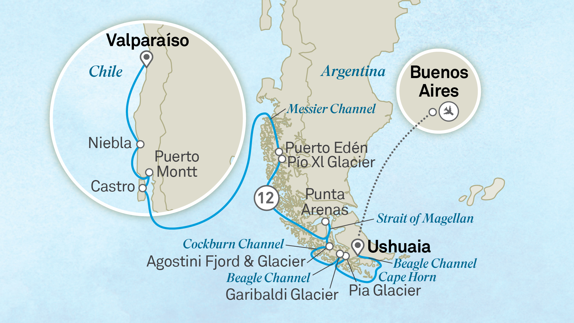 Your voyage ends today in Ushuaia, the main island of Tierra del Fuego and the southernmost city in the world. Farewell the crew and your fellow guests and disembark after breakfast for your flight to Buenos Aires. Take with you memories of a truly unforgettable journey through the wild beauty of Patagonia.